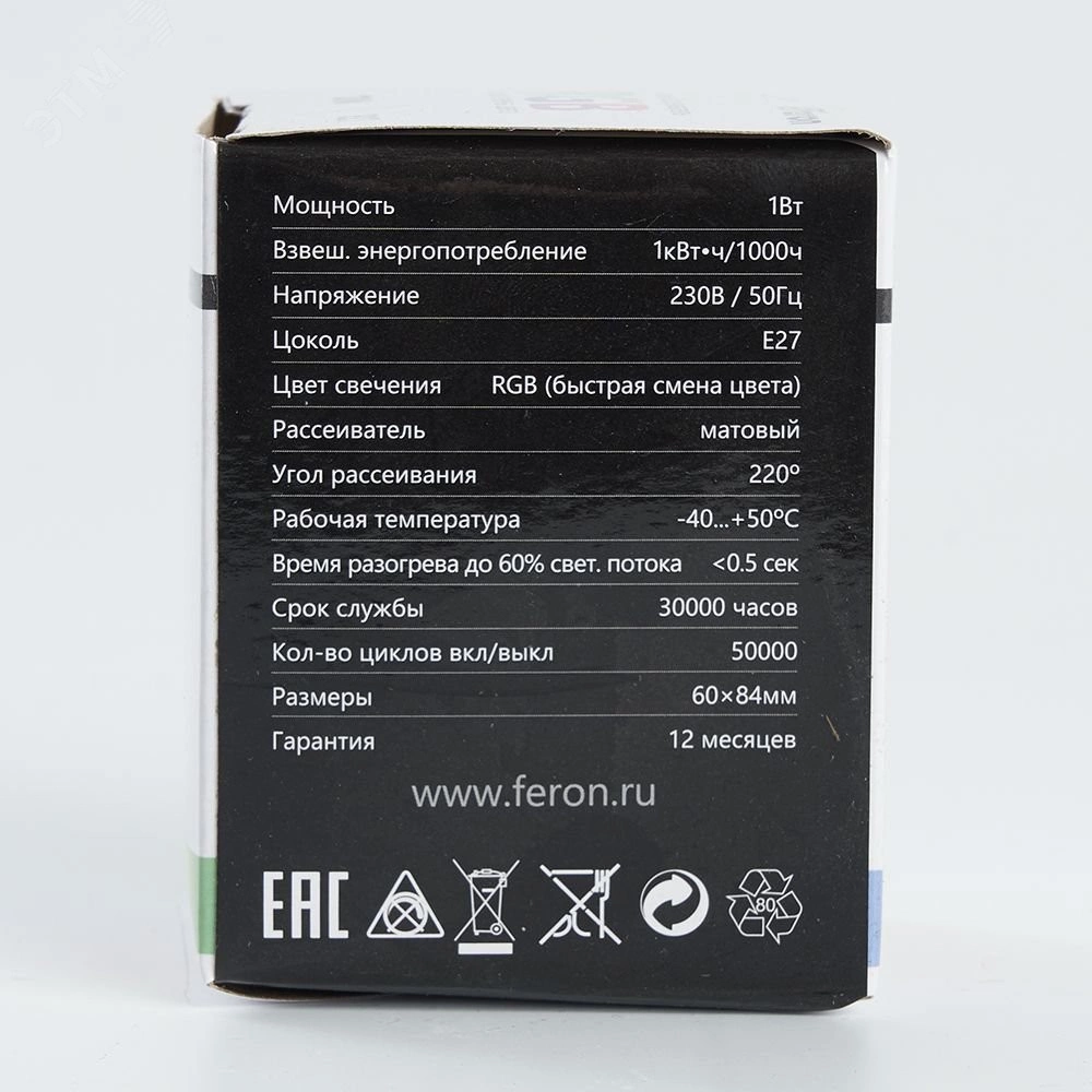 Лампа светодиодная LED 1вт Е27 RGB быстрая смена цвета шар