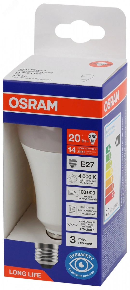 Светодиодные лампы OSRAM LONG LIFE - разумная замена галогенным и традиционным лампам накаливания. Специальная серия OSRAM LONG LIFE снижает затраты на освещение до 90%, сохраненяя привычный и комфортный уровень освещенности. В целях безопасности и с заботой о здоровье потребителей, при производстве не используются вредные вещества согласно материалам европейского стандарта RoHS. Приобретая лампы OSRAM LONG LIFE, вы получаете качество света на высоте - низкие пульсации защищают глаза, высокий индекс цветопередачи позволяет видеть мир в его истинном цвете, отсутствие вредных электромагнитных излучений, что подтверждено сертификатом ЭМС, долгий срок службы в 40 000 часов, 3 года гарантии производителя.