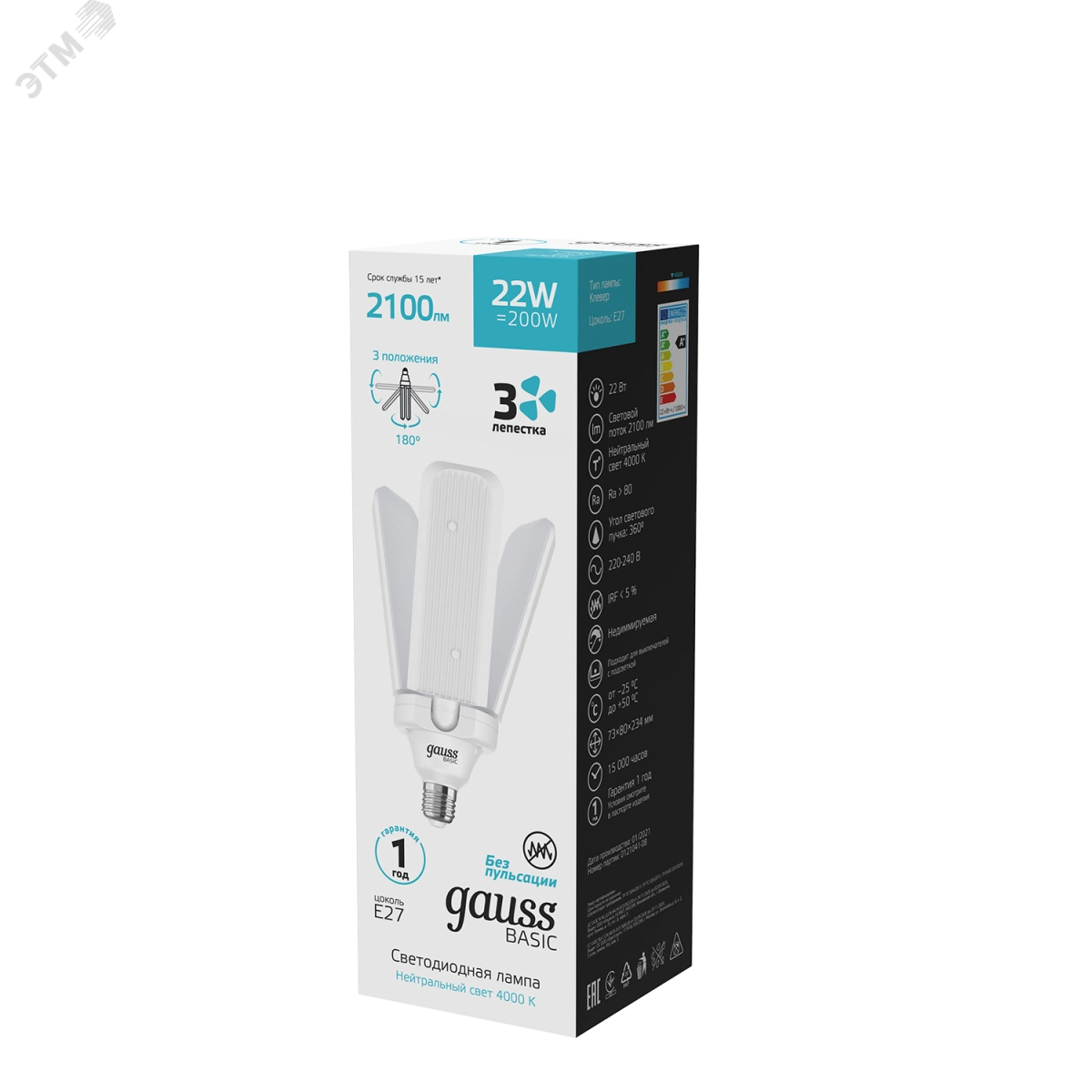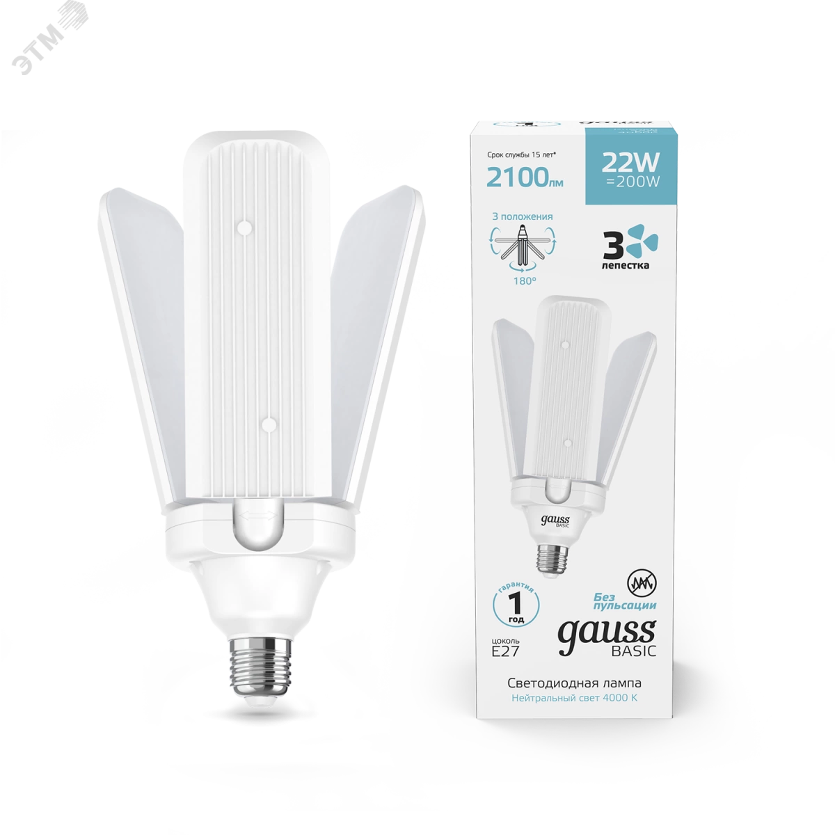 Лампа светодиодная LED 22 Вт 2100 Лм 4000К E27 белая Клевер-3 Basic Gauss