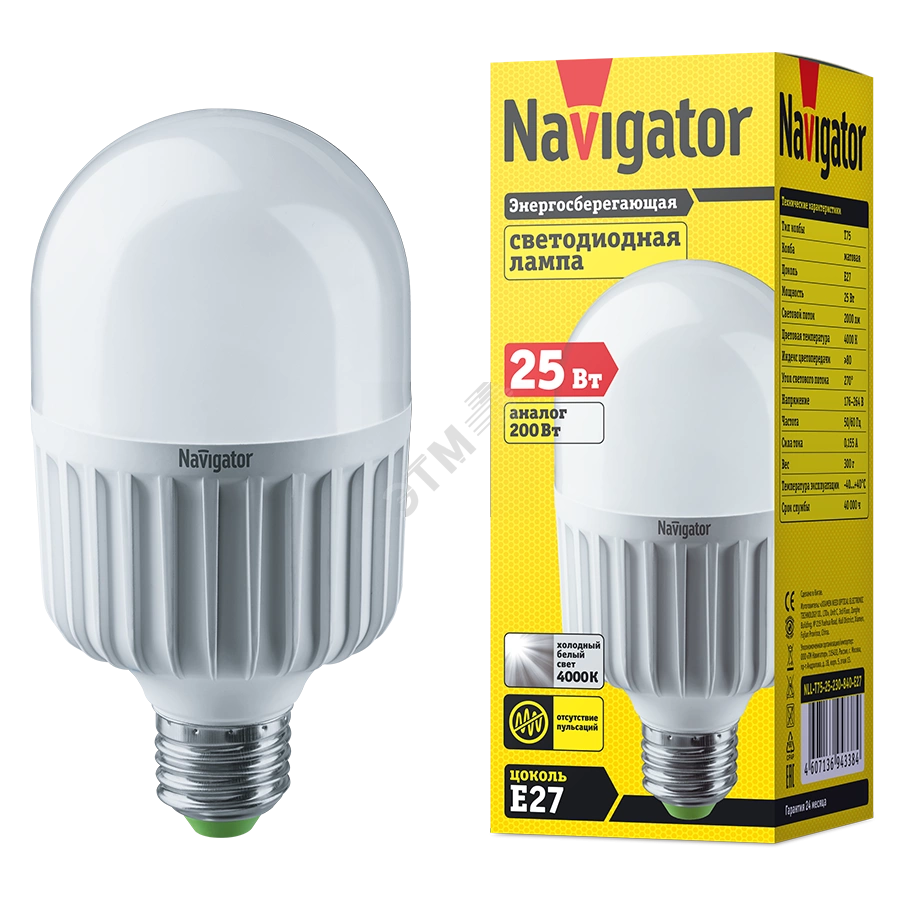 Cветодиодные лампы Navigator – идеальная замена стандартных ламп накаливания. Данные лампы работают в широком диапазоне входного напряжения от 176 до 264 В без снижения яркости. При производстве ламп используются светодиоды Epistar (Тайвань), что обеспечивает высокую эффективность до 100 лм/Вт. Радиатор изготовлен из композитного материала на основе пластика и алюминия, что способствует увеличению срока службы лампы. Угол раскрытия светового луча – 270 градусов. Отсутствуют пульсации светового потока.