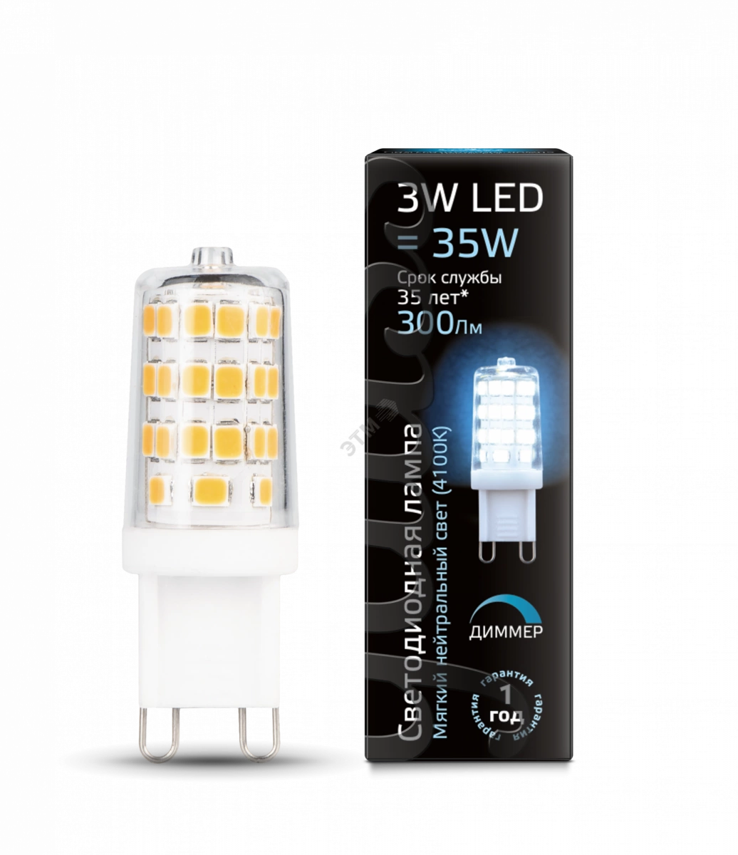 Лампа светодиодная LED 3 Вт 300 Лм 4100К белая G9 капсула 220 В диммируемая керамика Black Gauss