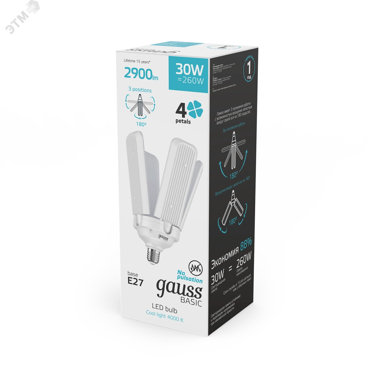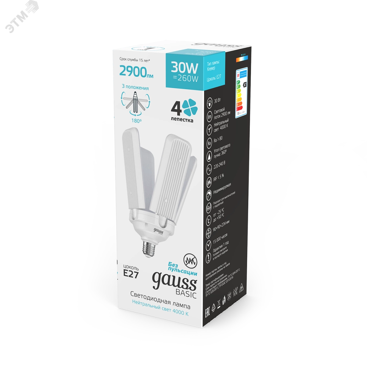Лампа светодиодная LED 30 Вт 2900 Лм 4000К белая E27 Клевер-4 Basic Gauss