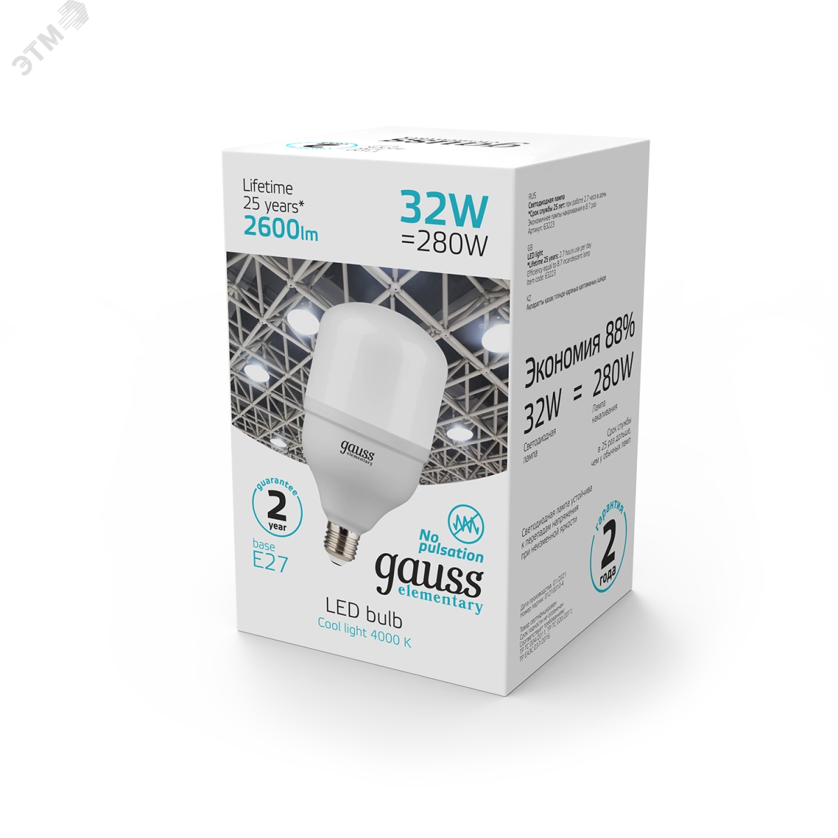 Gauss Т100-Т160 с широким выбором мощностей (32-100Вт) и светового потока (2700-8800 лм) Светодиодные лампы высокой мощности в основном используются в освещении помещений большой площади и высокими потолками (от 3,5 метров), а также уличных системах освещения. Высокая мощность и большой световой поток при минимальном энергопотреблении - Gauss Т100-Т160