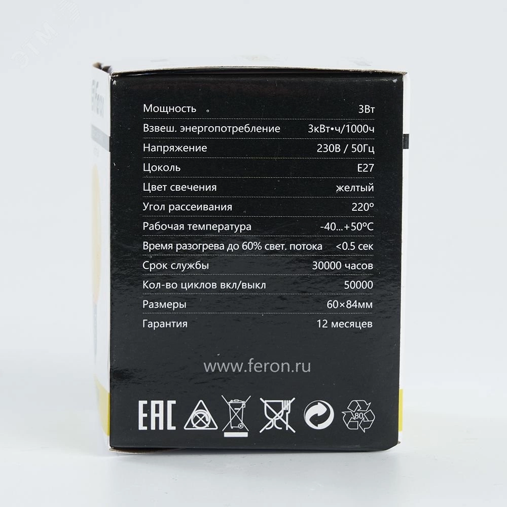 Лампа светодиодная LED 3вт Е27 желтый шар G60