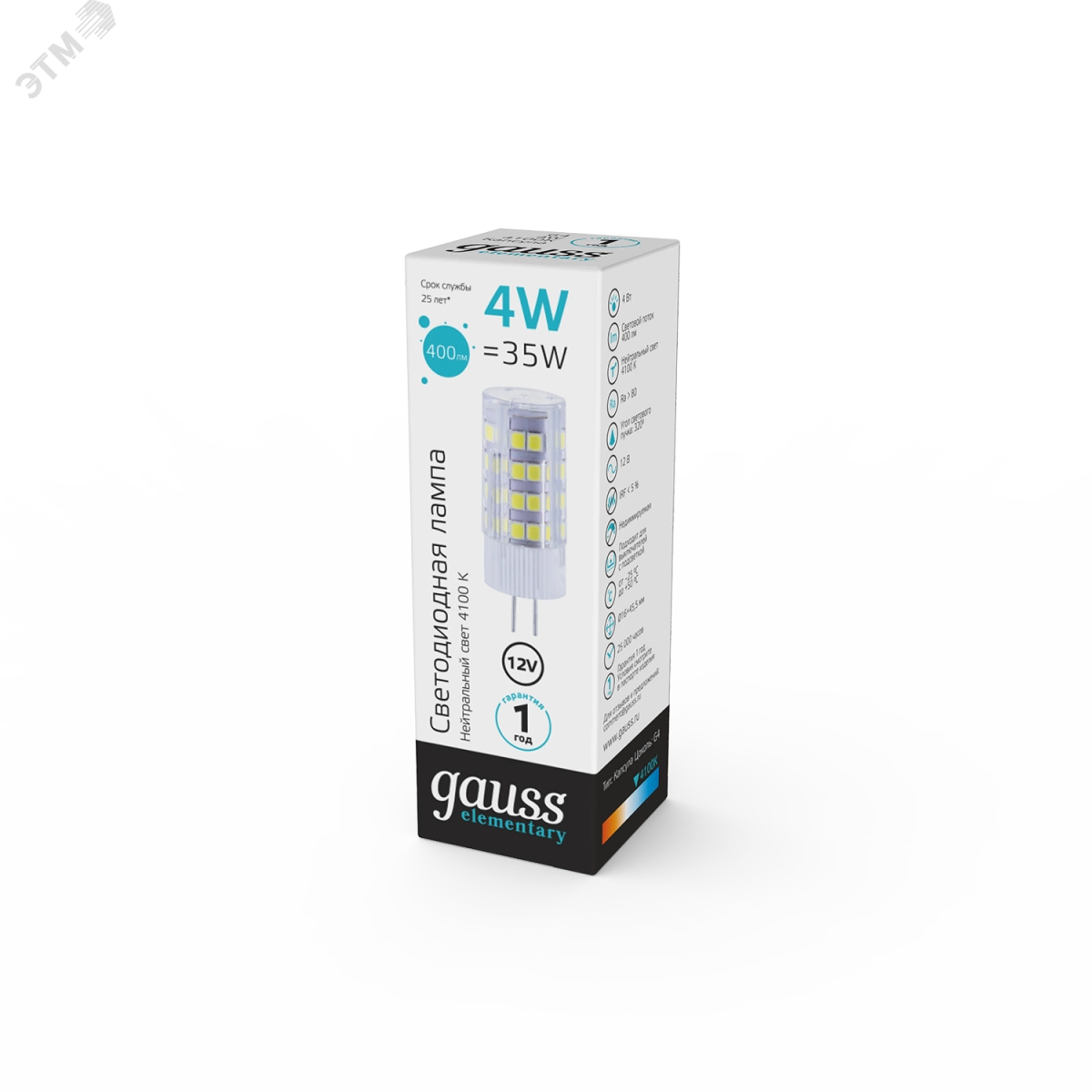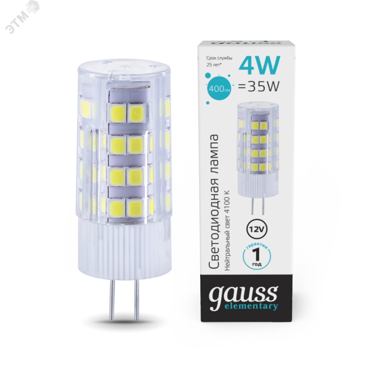 Лампа светодиодная LED 4 Вт 180 Лм 4100К G4 капсула белая DC 12 В Elementary Gauss