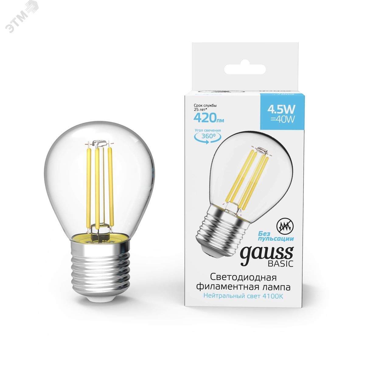 Светодиодные филаментные лампы GAUSS - это новейшие технологии в светотехнике. Лампы имеют привычный вид классических ламп накаливания, освещают пространство на 360о и дают больше света по сравнению с обычными светодиодными лампами за счет прозрачной колбы. Идеально подходят для хрустальных люстр и открытых светильников, а также для реализации дизайнерских решений, где важен вид классических ламп накаливания.