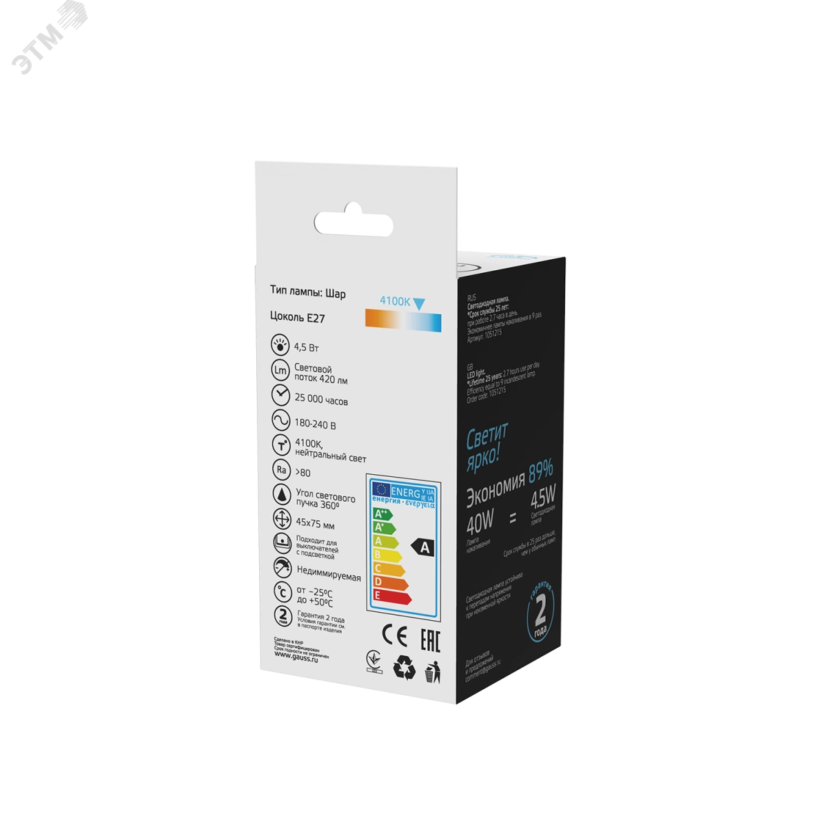 Лампа светодиодная LED 4,5 Вт 420 Лм 4100К белая Е27 Шар Basic Filament Gauss