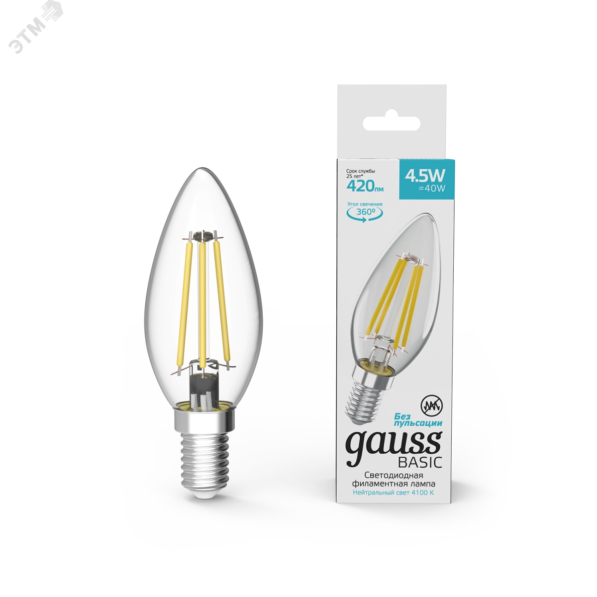 Лампа светодиодная LED 4.5 Вт 420 Лм 4100К белая Е14 Свеча Basic Filament Gauss