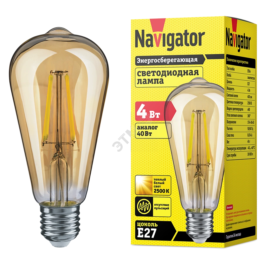 Cветодиодные лампы Navigator – идеальная замена стандартных ламп накаливания. Данные лампы работают в широком диапазоне входного напряжения от 176 до 264 В без снижения яркости. При производстве ламп используются светодиоды Epistar (Тайвань), что обеспечивает высокую эффективность до 100 лм/Вт. Радиатор изготовлен из композитного материала на основе пластика и алюминия, что способствует увеличению срока службы лампы. Угол раскрытия светового луча – 230 градусов. Отсутствуют пульсации светового потока.