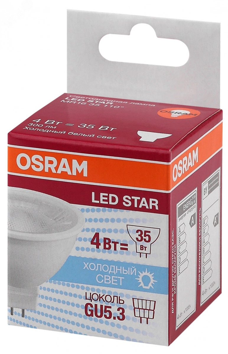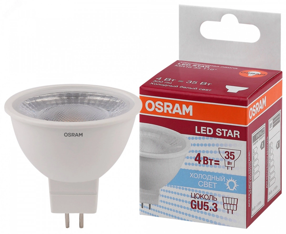 Светодиодные лампы OSRAM - разумная замена традиционным лампам - они снижают затраты на освещение до 90% при сохранении привычного уровня освещенности. Световой поток лампы равен 300 люмен, что соответствует лампе накаливания на 35 Вт. Подобные лампы ('споты') используются для внутреннего освещения. Особенно часто их используют для освещения ванных комнат внутри закрытого светильника. Качество света на высоте - низкие пульсации защищают глаза, а высокий индекс цветопередачи позволяет видеть мир в его истинном цвете. Кроме того, лампы OSRAM полностью безопасны для здоровья, поскольку в них нет опасных материалов по европейскому стандарту RoHS, а также они не производят вредных электромагнитных излучений, что подтверждено ЭМС (сертификат электромагнитной совместимости). Лампа проработает долго - 15000 часов, 2 года гарантии. Светодиодные лампы OSRAM - умный выбор!