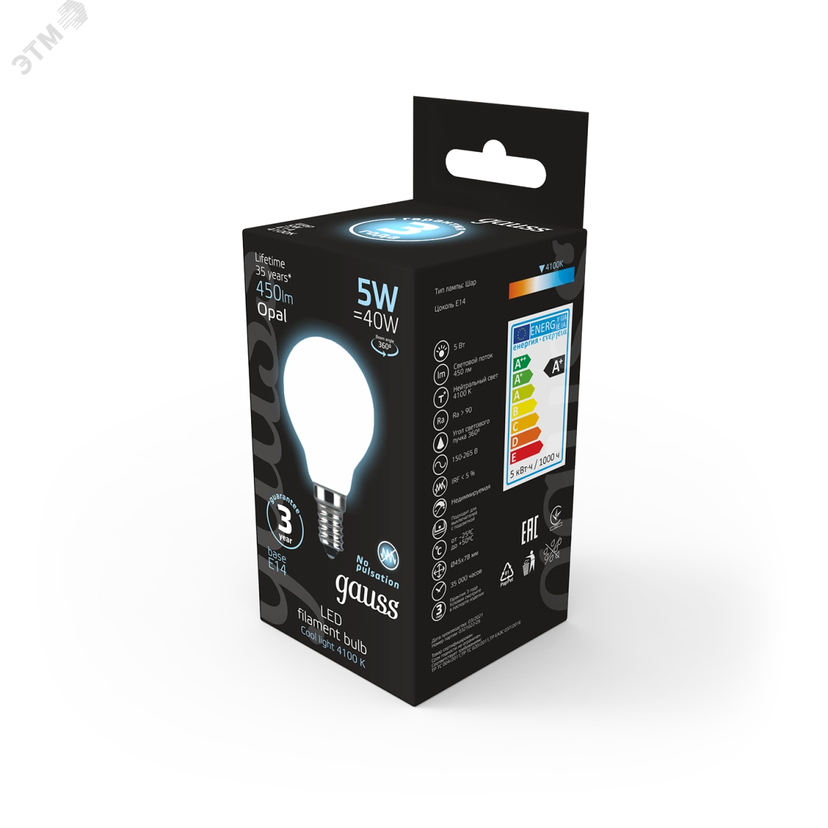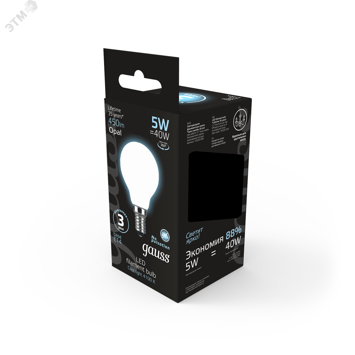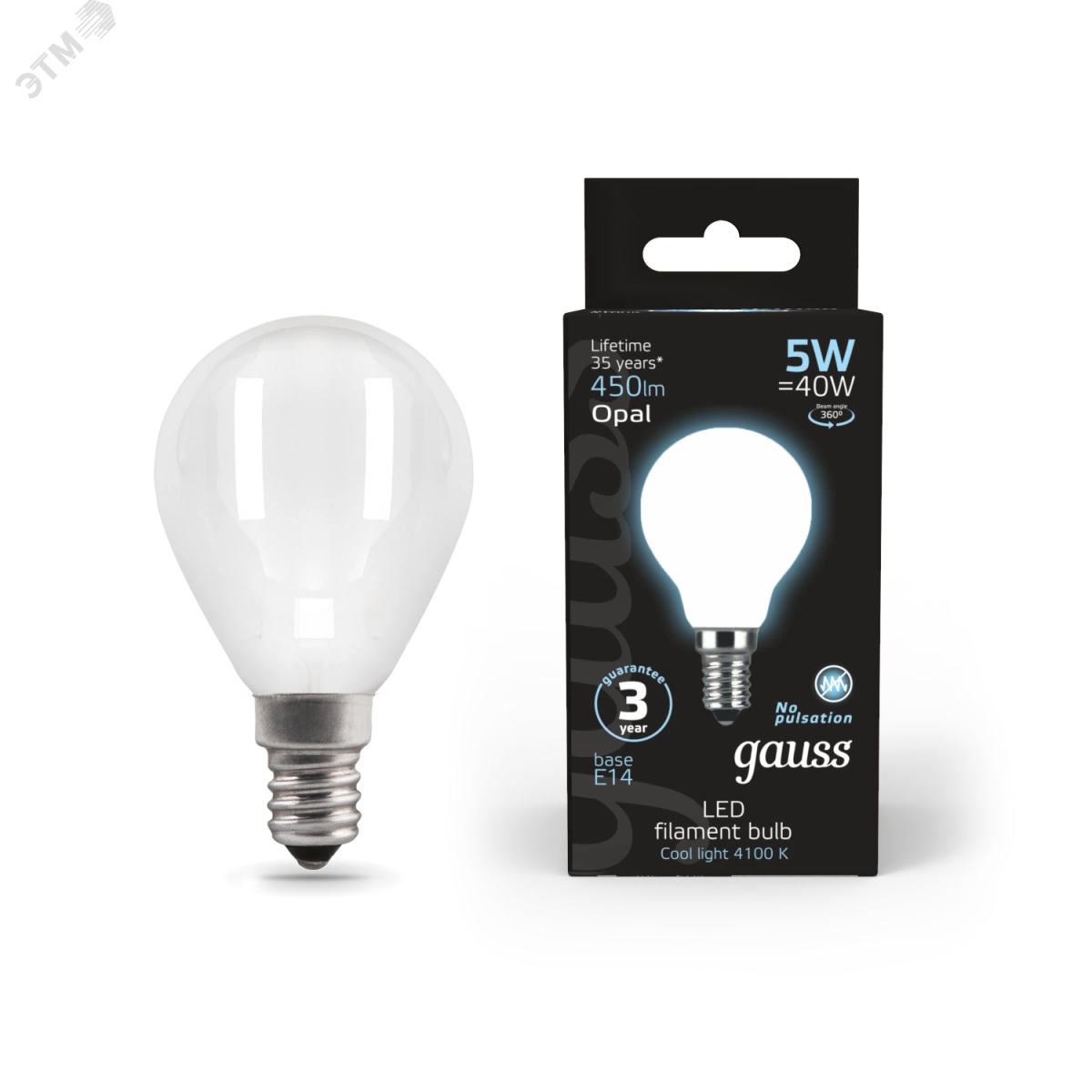Лампа светодиодная LED 5 Вт 450 Лм 4100К белая Е14 Шар milky Filament Gauss