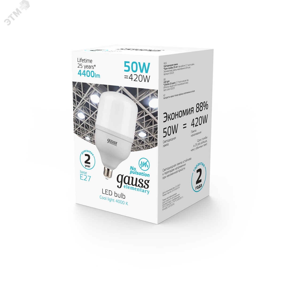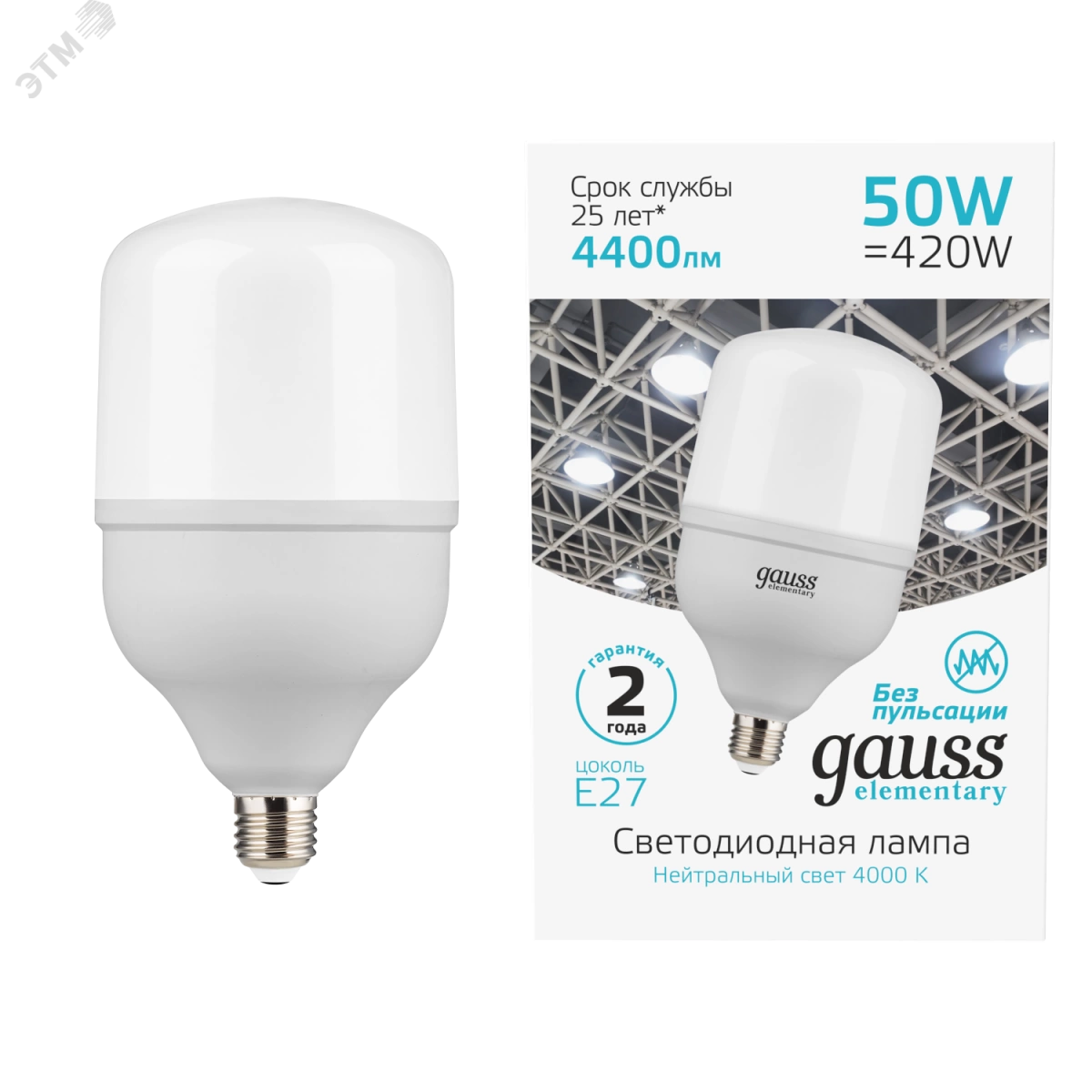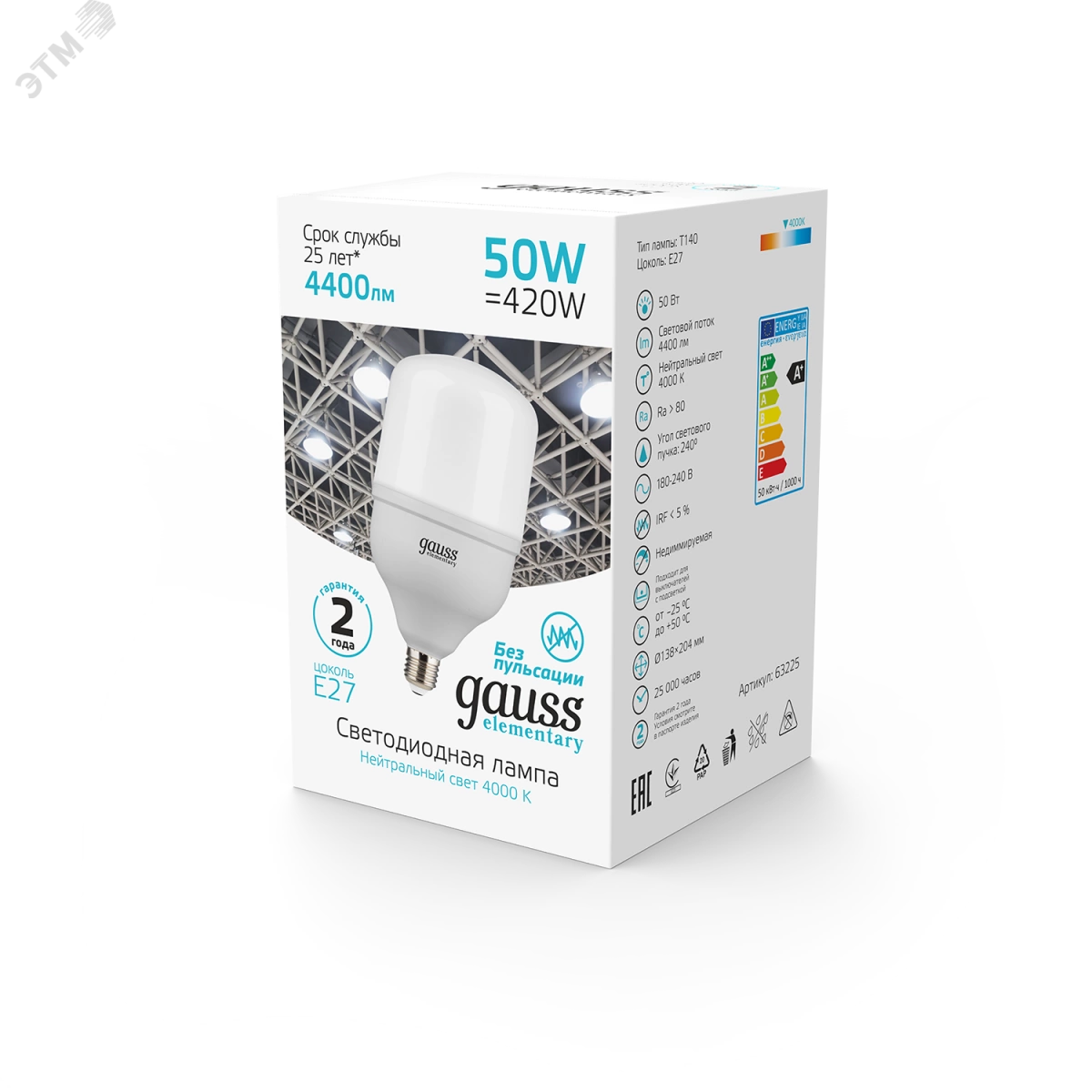 Лампа светодиодная LED 50 Вт T140 E27 4400 Лм 180-240 В 4000К Elementary Gauss