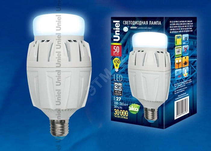 Лампа светодиодная LED 50вт 100-265в E27 6000К