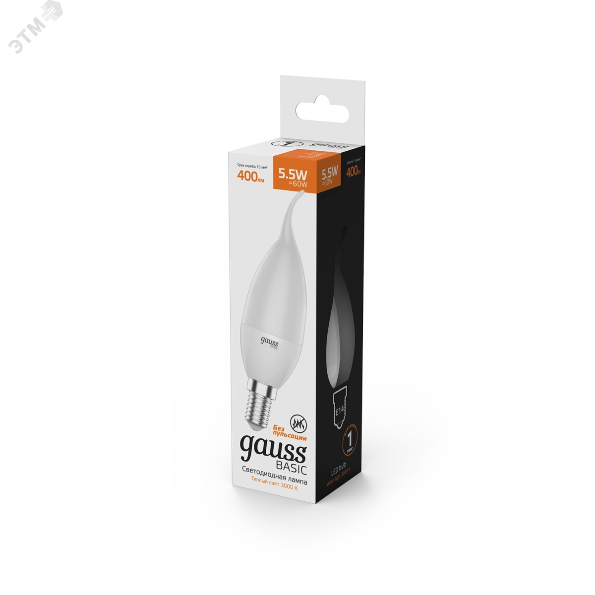 Лампа светодиодная LED 5.5 Вт 400 лм 3000К AC180-240В E14 свеча теплая Basic Gauss