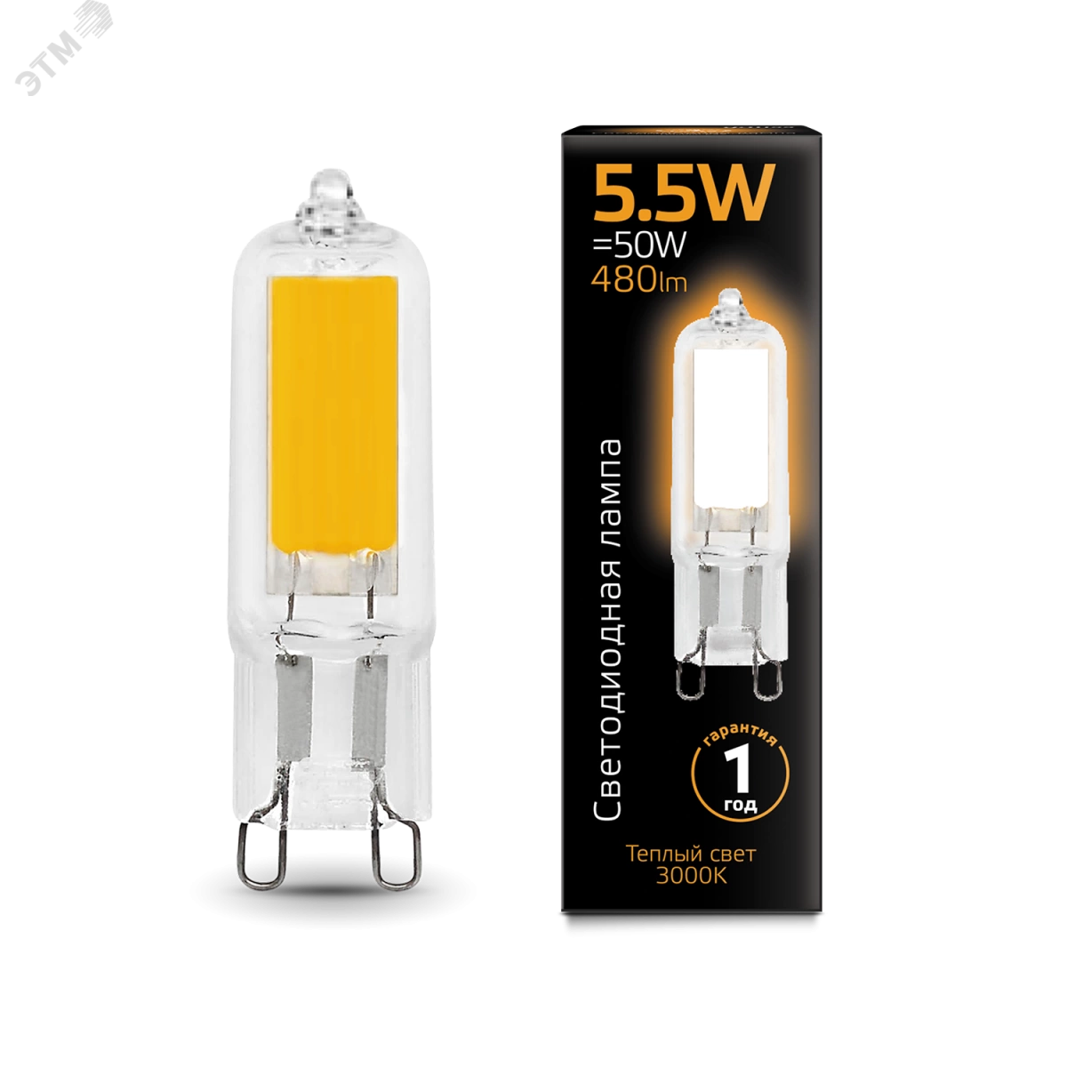 Лампа светодиодная LED 5.5 Вт 480 Лм 3000К теплая G9 капсула 220 В стекло Black Gauss