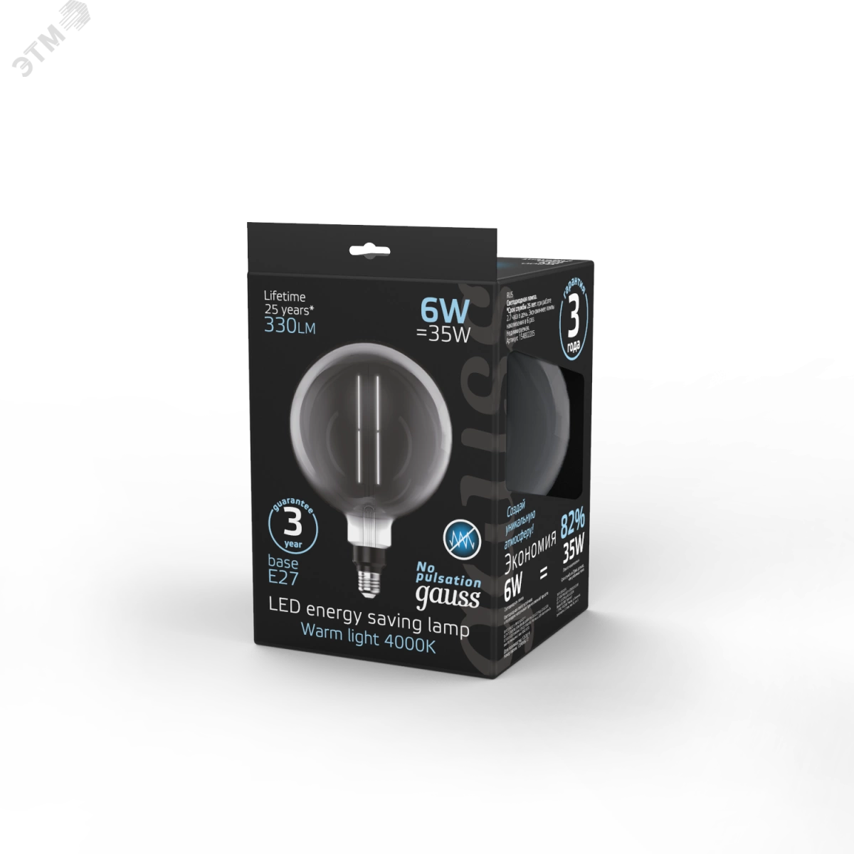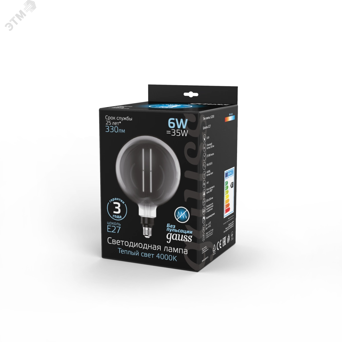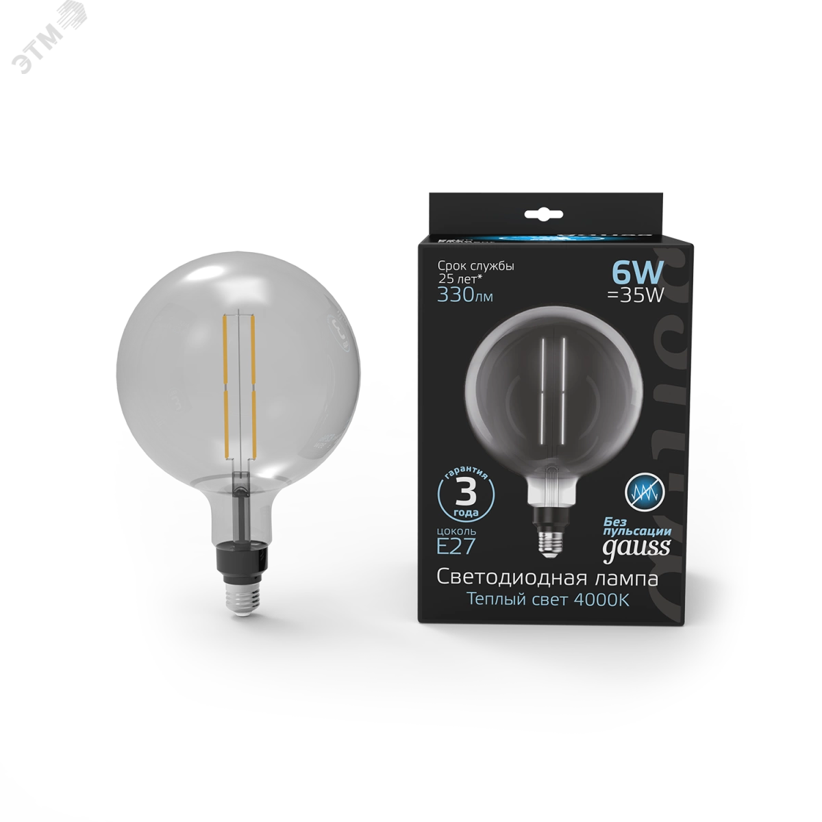 Лампа светодиодная LED 6 Вт 330 Лм 4000К белая Е27 G200 gray straight Filament Gauss
