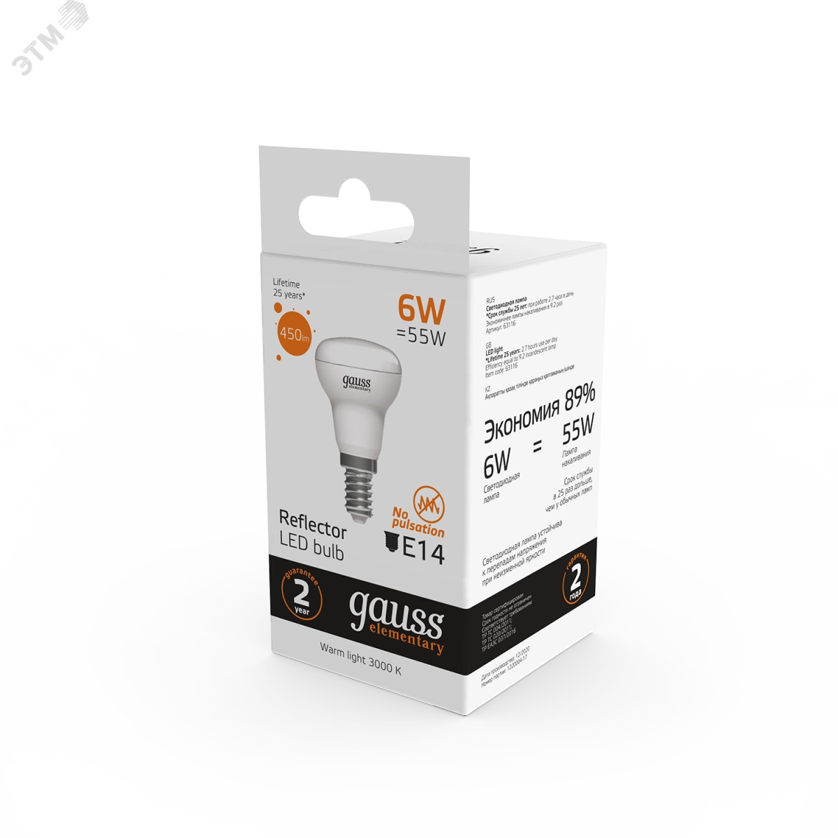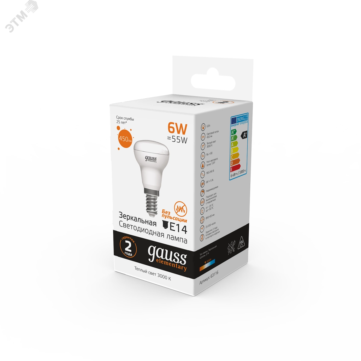 Лампа светодиодная LED 6 Вт 450 Лм 3000К теплая Е14 R50 Elementary Gauss
