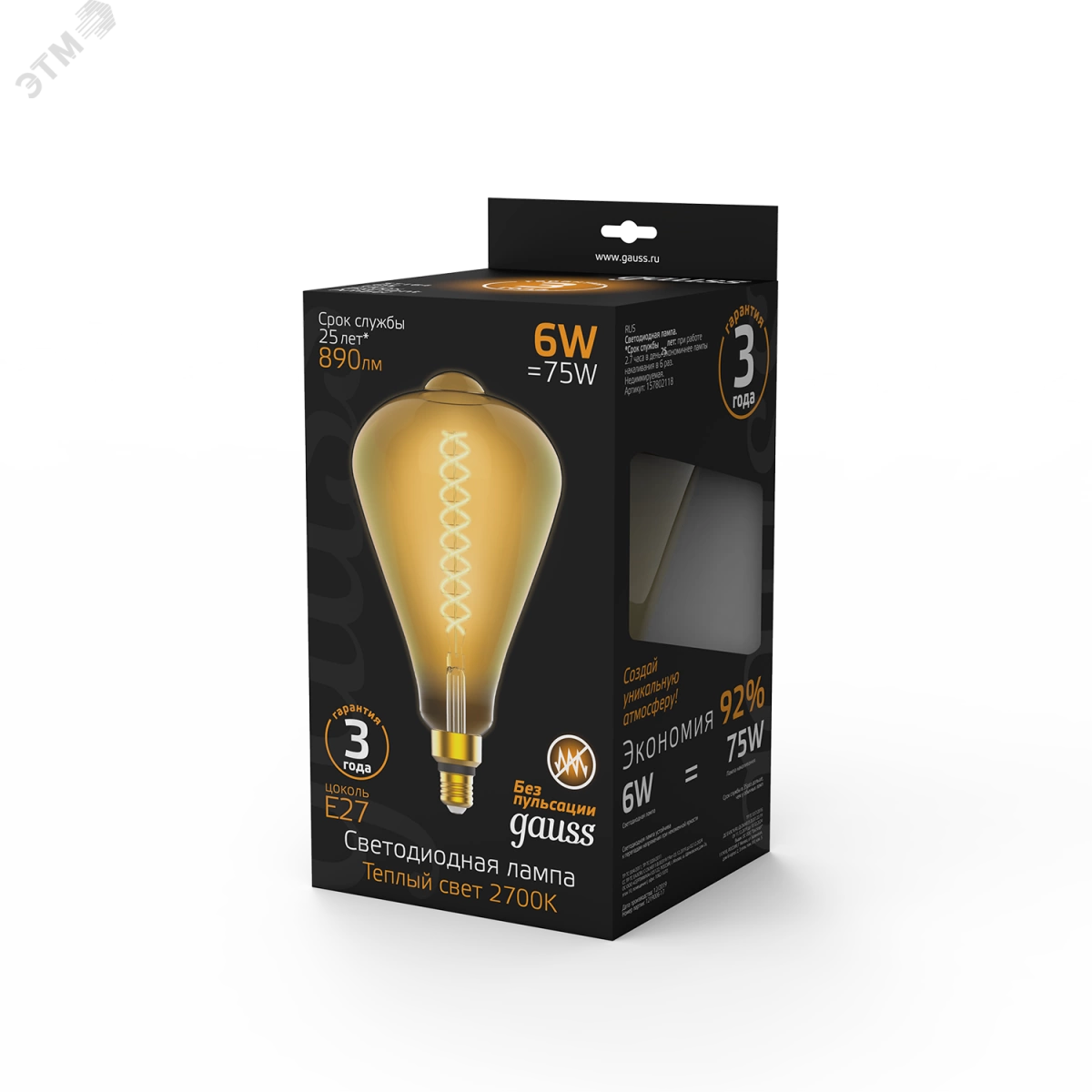 Лампа светодиодная LED 6 Вт 890 Лм 2700К теплая Е27 ST164 golden straight Filament Gauss