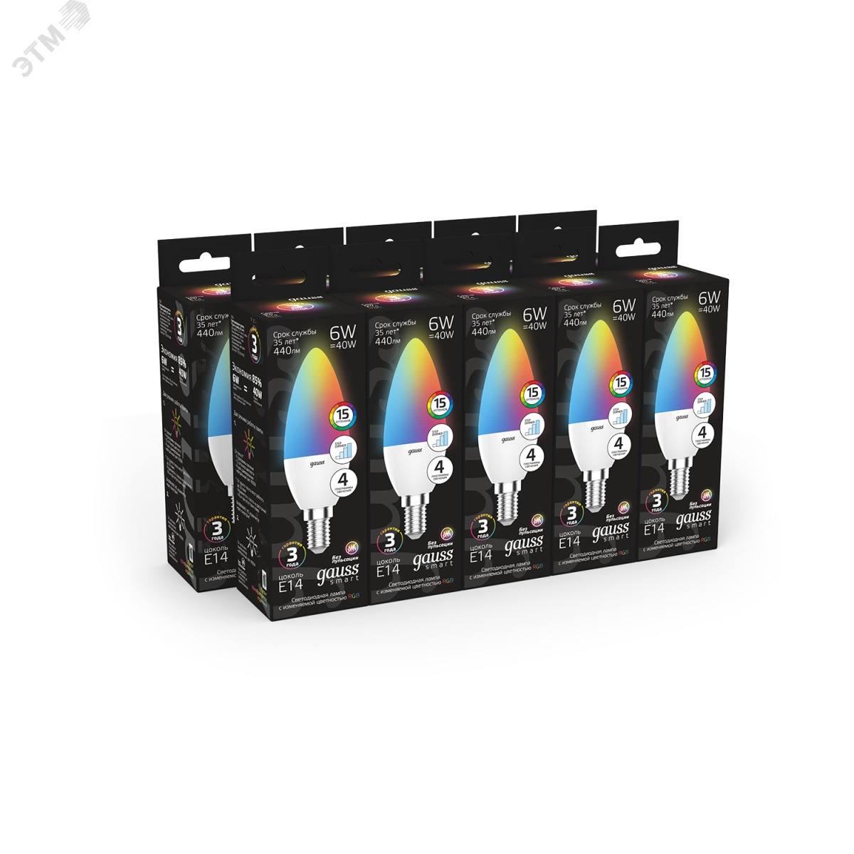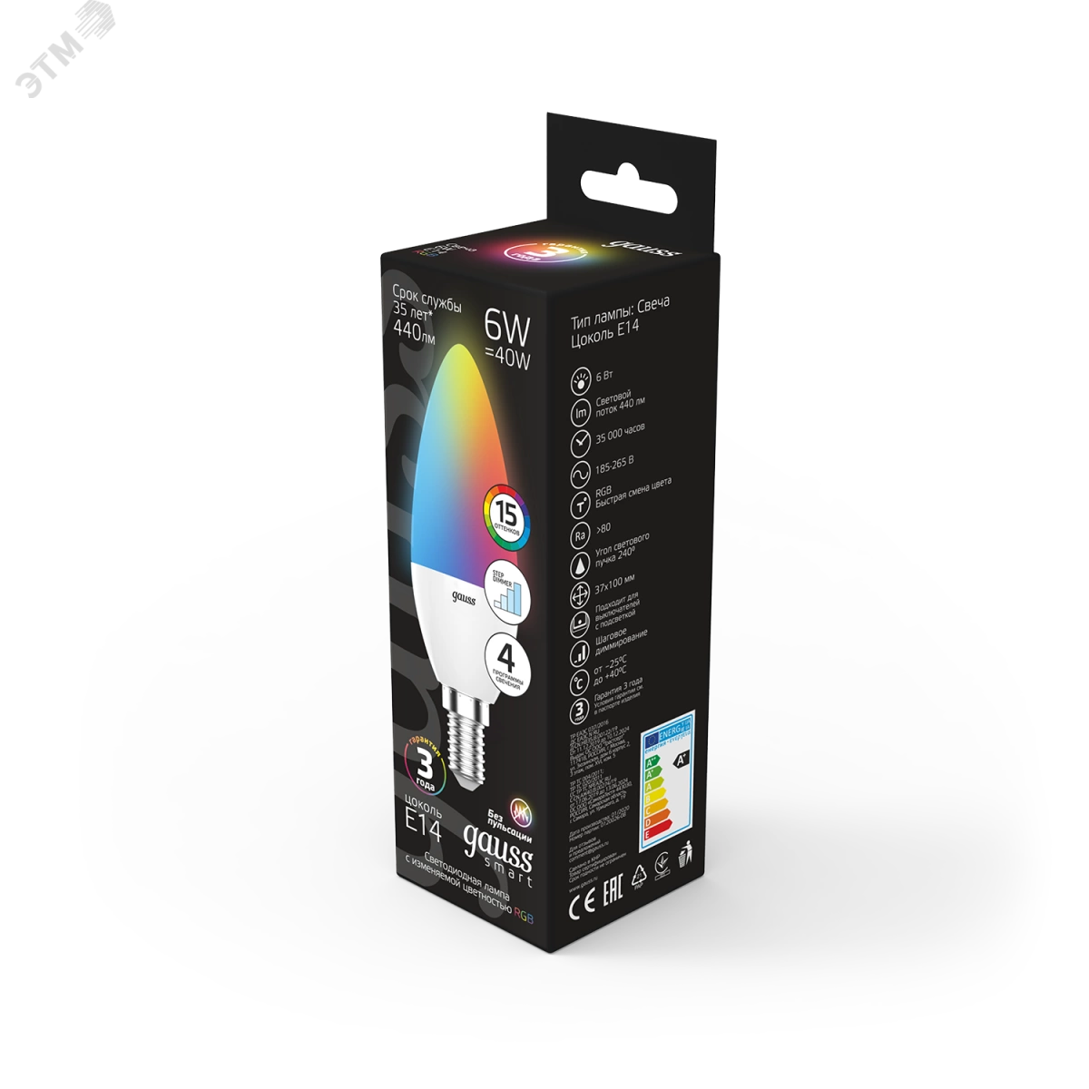 Лампа светодиодная LED 6 Вт RGB Вт+димирование E14 Свеча Black Gauss