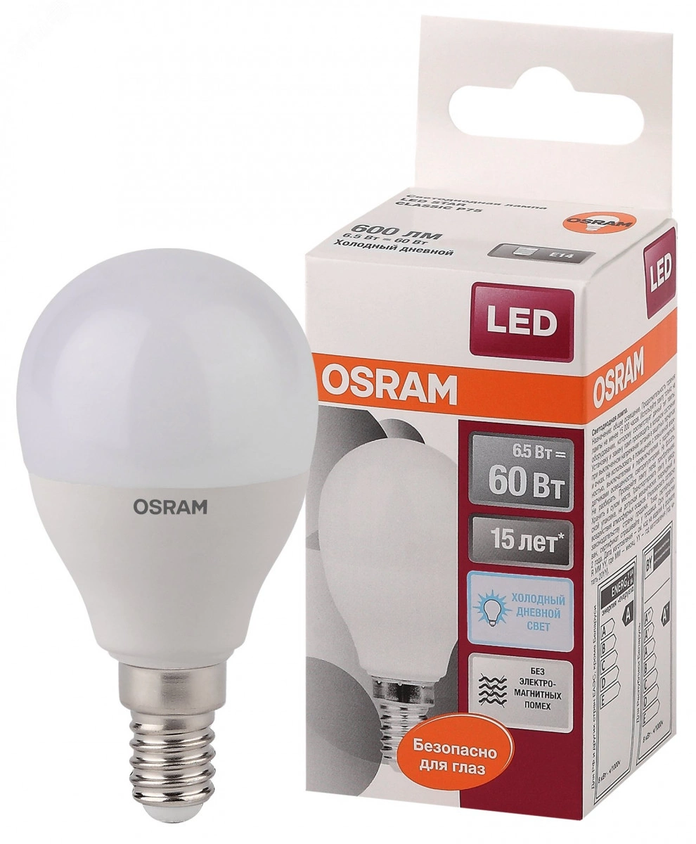 Светодиодные лампы OSRAM - это разумная замена традиционным лампам. Они снижают затраты на освещение до 90% при сохранении привычного уровня освещенности.Световой поток лампы равен 600 люмен, что соответствует лампе накаливания на 60 Вт. Внутри этой лампы расположена коллиматорная линза (''корона''), благодаря которой лампа равномерно светит во все стороны и отлично вписывается в открытые светильнки. Качество света на высоте так как низкие пульсации защищают глаза, а высокий индекс цветопередачи позволяет видеть мир в его истинном цвете. Кроме того, лампы OSRAM полностью безопасны для здоровья, поскольку в них нет опасных материалов по европейскому стандарту RoHS, а также они не производят вредных электромагнитных излучений, что подтверждено ЭМС (сертификат электромагнитной совместимости). Светодиодные лампы OSRAM - умный выбор для здоровья семьи и кошелька!
