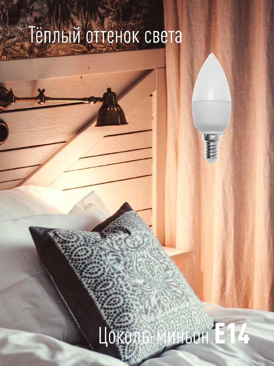 Светодиодная лампочка 6,5 Вт является аналогом лампы накаливания ''свеча'' 50 Вт - для средней комнаты понадобится 5 таких лампочек. Стабильный свет без падения яркости в течение всего срока службы (30 000 часов) - за счет использования светодиодов известных производителей. Лампа работает в диапазоне от 174В до 265В - не перегорит и не потеряет яркость при скачках напряжения в сети.Цвет свечения лампы - 3000 К теплый белый, идеально подойдет для спальни, и других зон, где требуется мягкий, расслабляющий свет. ''Здоровый'' свет без мерцания не утомляет глаза, а высокий индекс цветопередачи передает естественные цвета и оттенки.По размеру сопоставима с обычной лампочкой накаливания, но экономит до 90% энергии по сравнению с ней. Экологически безопасна и не требует утилизации. 2 года гарантии.