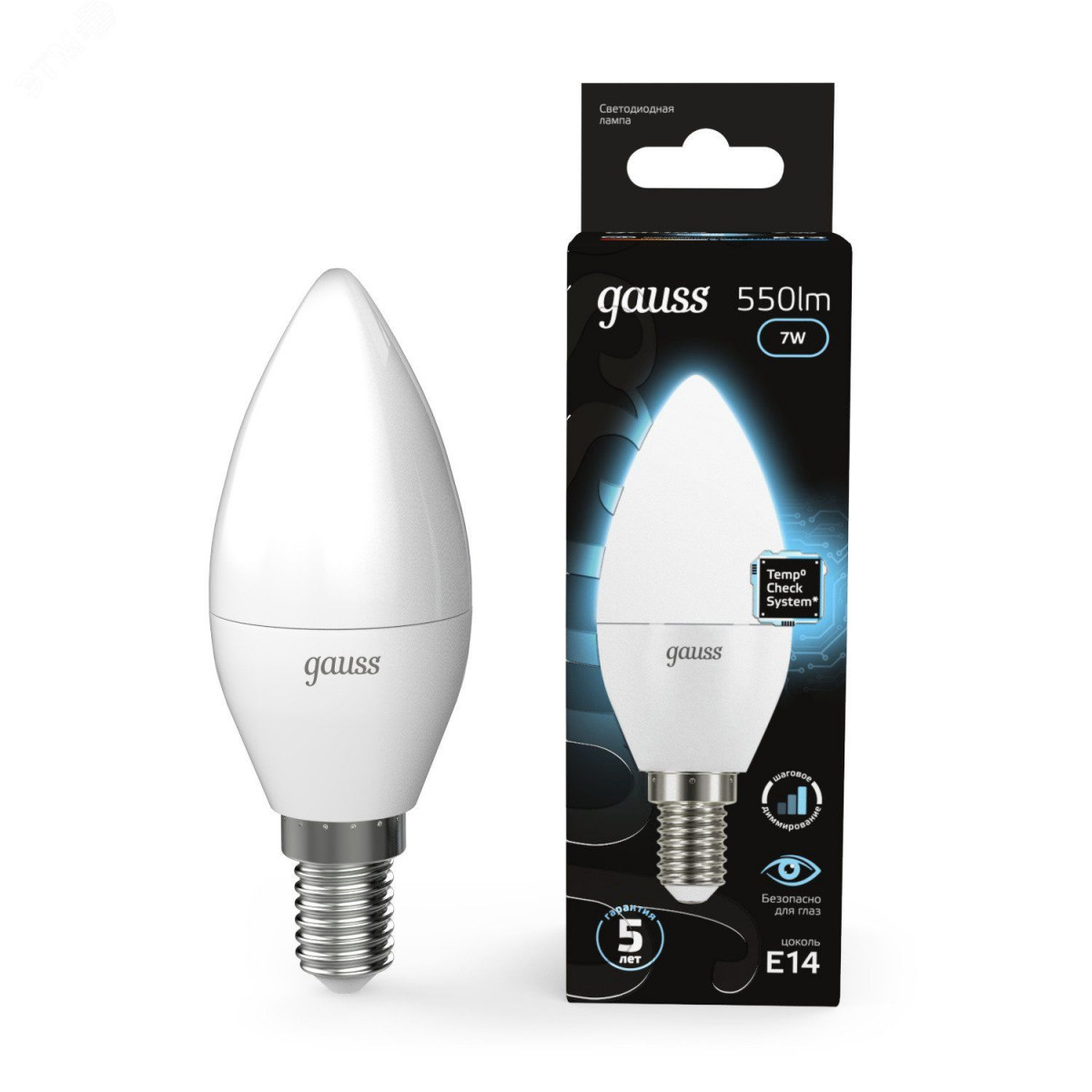 Лампа светодиодная LED 7 Вт 550 лм 4100К AC150-265В E14 свеча нейтральный шаговое диммирование выключателем Black Gauss