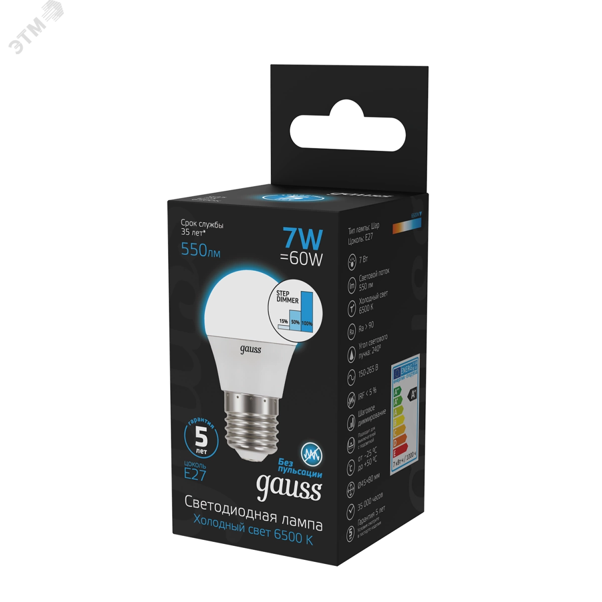 Премиальная серия ламп Gauss Black — надежные источники освещения высокого качества. Благодаря использованию качественных комплектующих и современных технологий лампы этой серии имеют один из самых высоких показателей энергоэффективности и долговечности. Уровень пульсации светового потока в светодиодных лампах Gauss ниже 5%, поэтому они создают комфортный и безопасный свет. Покупатель ламп серии black может быть уверен, что получает безопасный для глаз, яркий и комфортный свет. Передовые технологические решения обеспечивают стабильный световой поток даже при перепадах напряжения. Длительный срок гарантии — решение, основанное на уверенности в качестве продукции и ее долговечности.
