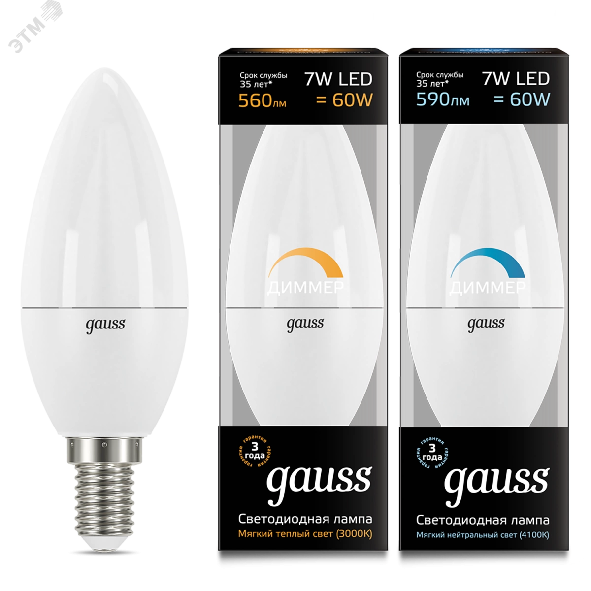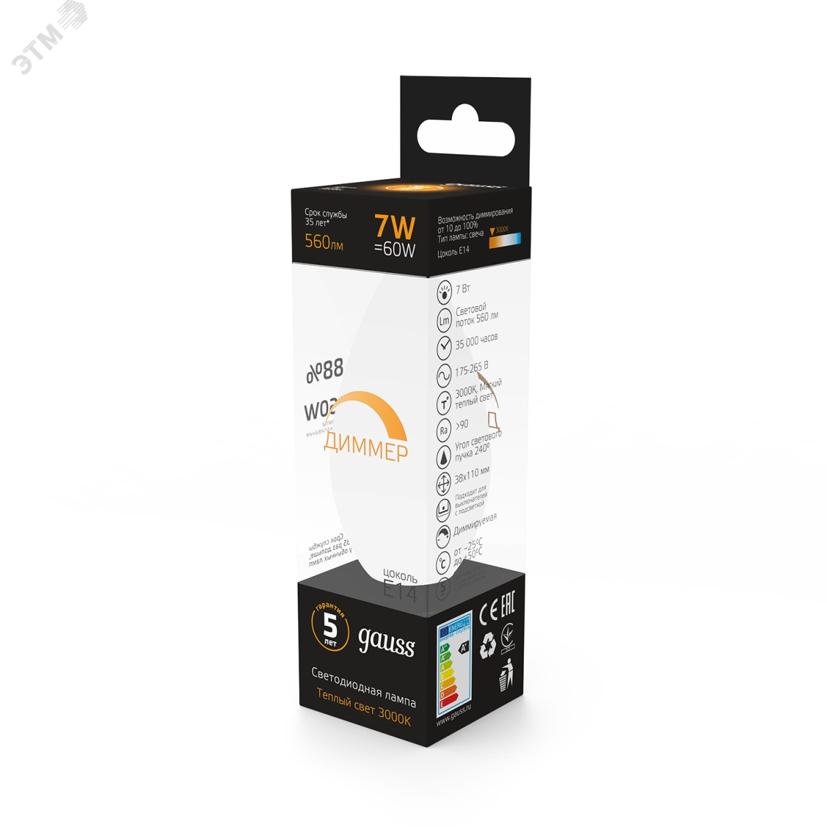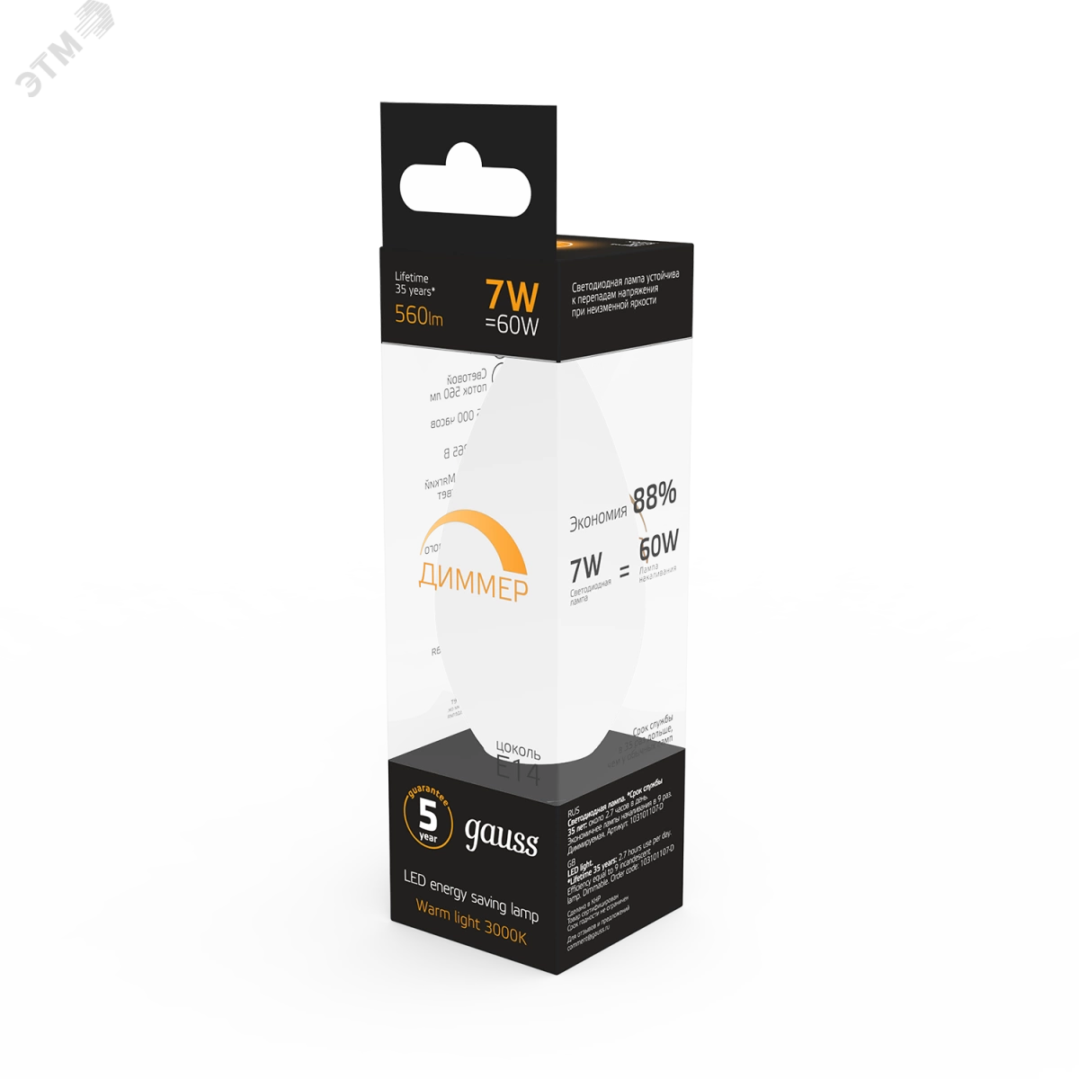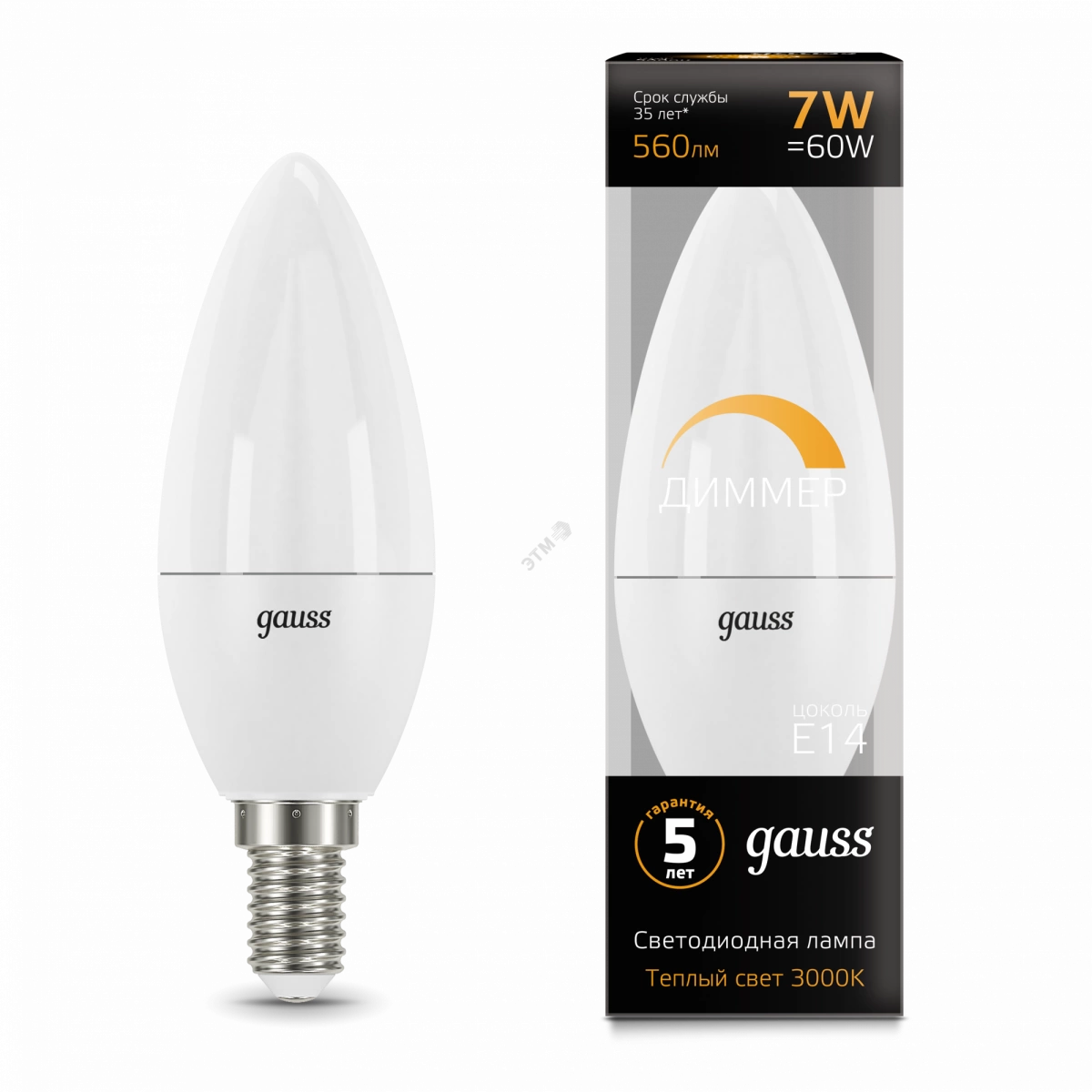 Лампа светодиодная LED 7 Вт 560 Лм 3000К теплая Е14 Свеча диммируемая Black Gauss