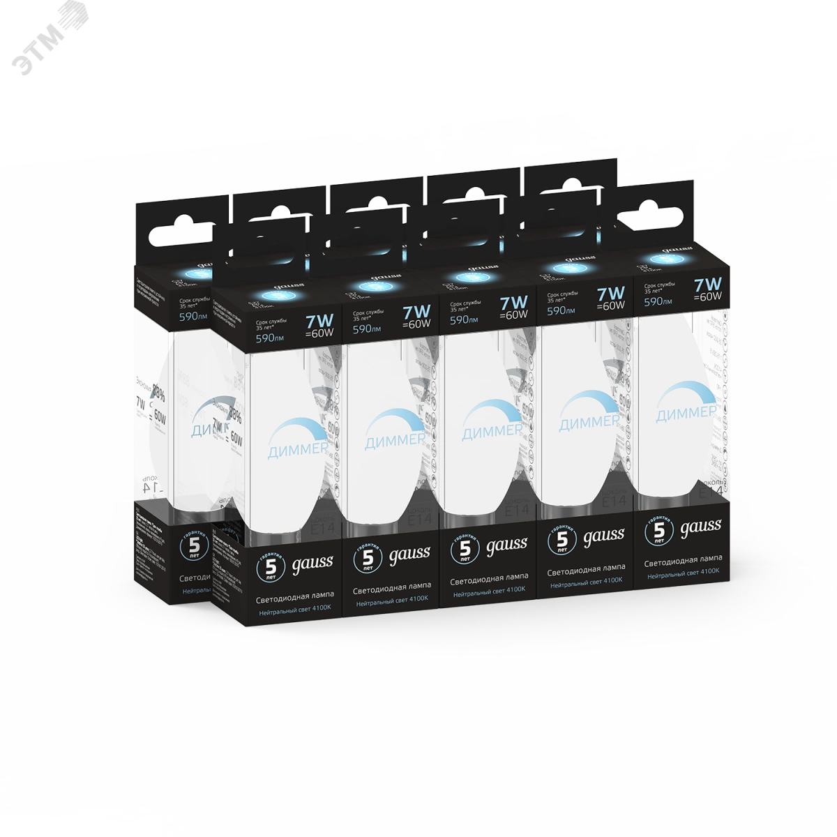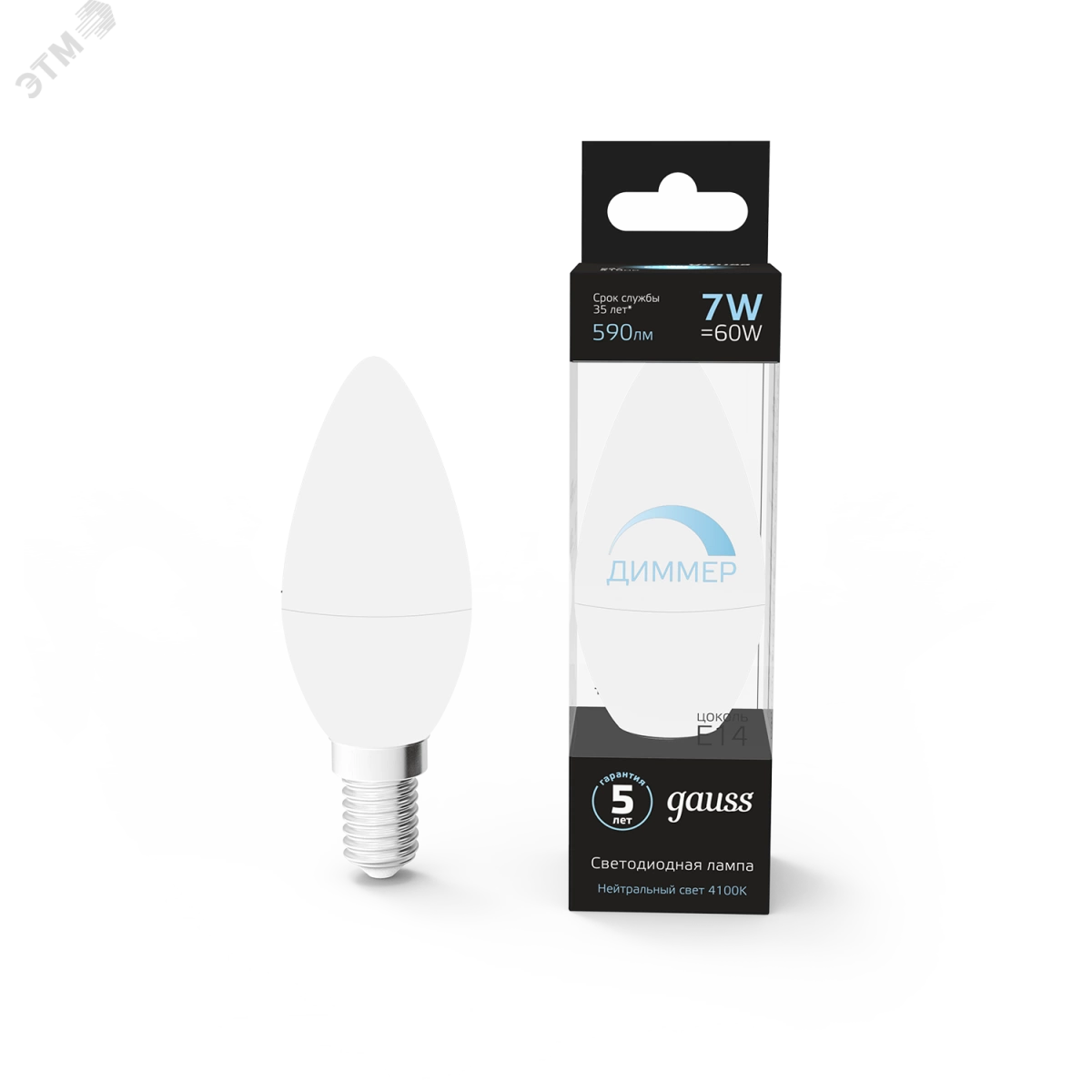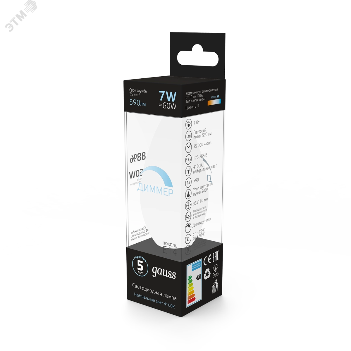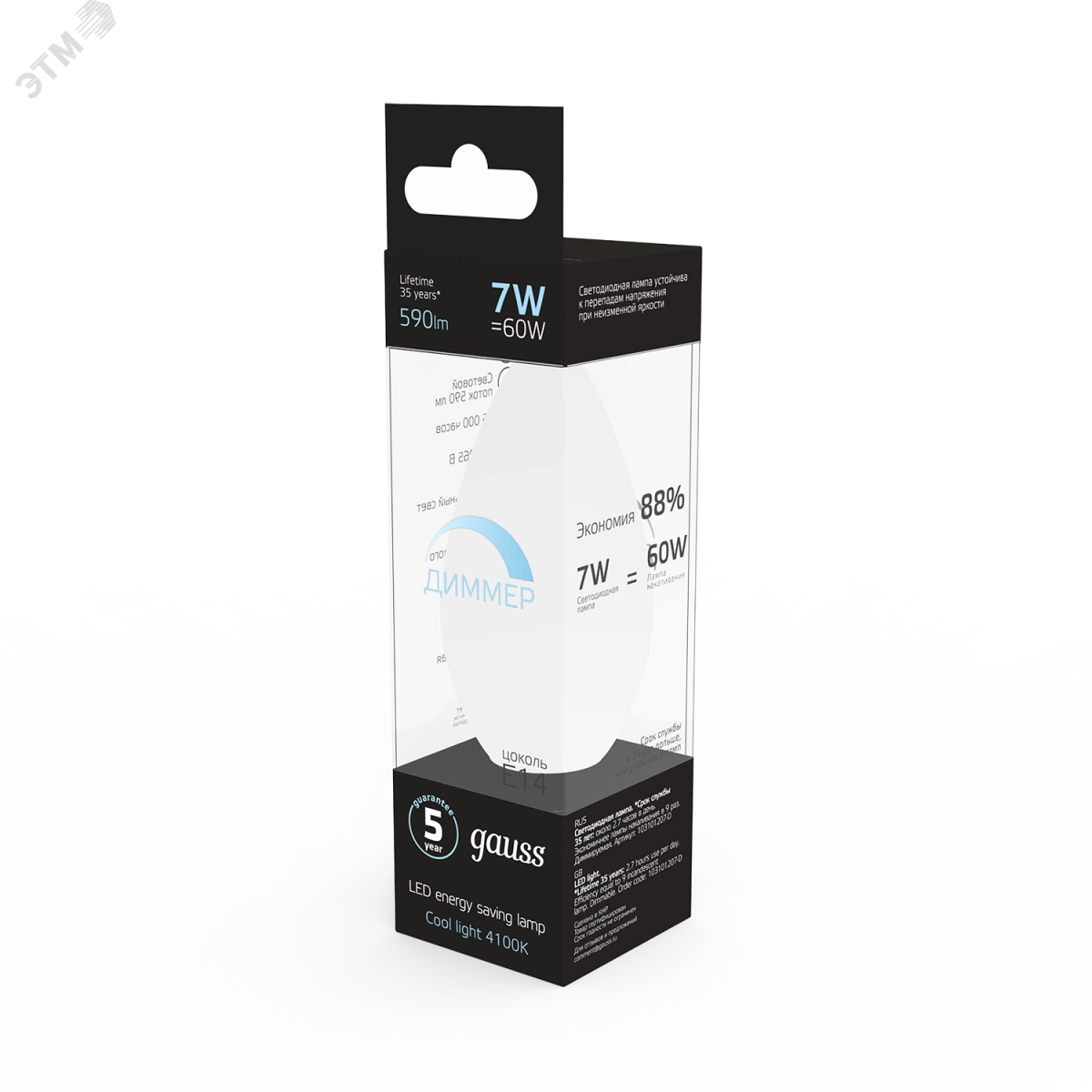 Лампа светодиодная LED 7 Вт 590 Лм 4100К белая Е14 Свеча диммируемая Black Gauss