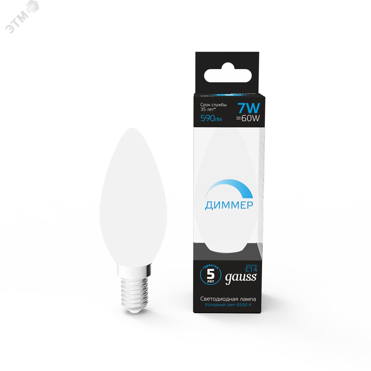 Лампа светодиодная LED 7 Вт 590 Лм 6500К холодная E14 Свеча диммируемая Black Gauss
