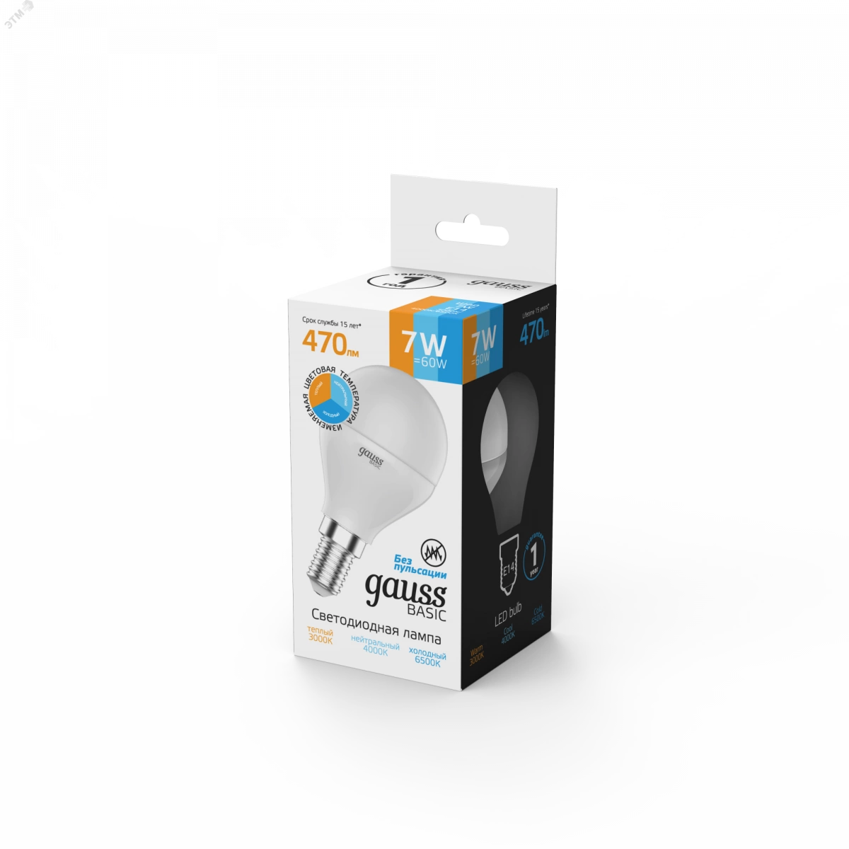 Лампа светодиодная LED 7.5 Вт Вт 470 Лм 3000К-4000К-6500К Е14 Шар изм.цвет.темп. Basic Gauss