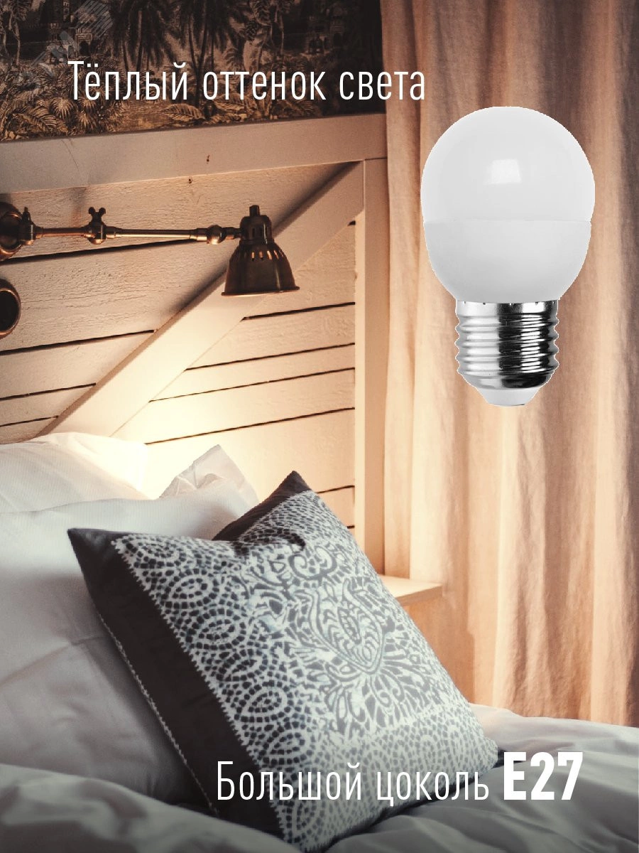 Светодиодная лампочка 7,5 Вт является аналогом лампы накаливания ''шарик'' 60 Вт - для средней комнаты понадобится 4 таких лампочки. Стабильный свет без падения яркости в течение всего срока службы (30 000 часов) - за счет использования светодиодов известных производителей. Лампа работает в диапазоне от 174В до 265В - не перегорит и не потеряет яркость при скачках напряжения в сети.Цвет свечения лампы - 3000 К теплый белый, идеально подойдет для спальни, и других зон, где требуется мягкий, расслабляющий свет. ''Здоровый'' свет без мерцания не утомляет глаза, а высокий индекс цветопередачи передает естественные цвета и оттенки.По размеру сопоставима с обычной лампочкой накаливания, но экономит до 90% энергии по сравнению с ней. Экологически безопасна и не требует утилизации. 2 года гарантии.