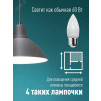 Светодиодная лампочка 7,5 Вт является аналогом лампы накаливания ''свеча'' 60 Вт - для средней комнаты понадобится 4 таких лампочки. Стабильный свет без падения яркости в течение всего срока службы (30 000 часов) - за счет использования светодиодов известных производителей. Лампа работает в диапазоне от 174В до 265В - не перегорит и не потеряет яркость при скачках напряжения в сети.Цвет свечения лампы - 4500 К нейтральный белый, идеально подойдет для кухни, коридора, и других зон, где требуется нейтральный свет.''Здоровый'' свет без мерцания не утомляет глаза, а высокий индекс цветопередачи передает естественные цвета и оттенки.По размеру сопоставима с обычной лампочкой накаливания, но экономит до 90% энергии по сравнению с ней. Экологически безопасна и не требует утилизации. 2 года гарантии.