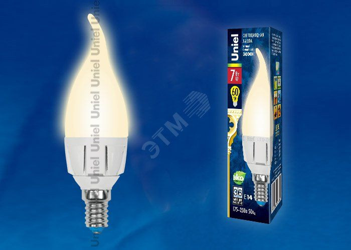 Лампа светодиодная LED 7вт 175-250В свеча на ветру матовая 600Лм Е14 3000К ЯРКАЯ