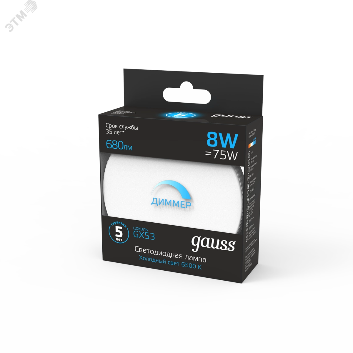 Лампа светодиодная LED 8 Вт 680 Лм 6500К холодная GX53 таблетка диммируемая Black Gauss