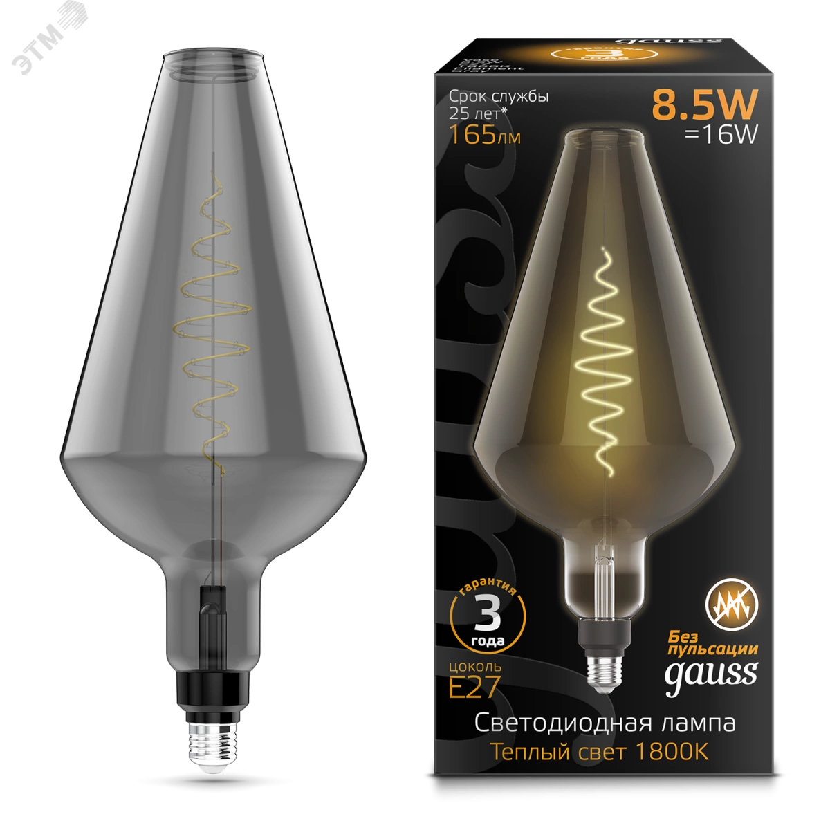 Лампа светодиодная LED 8.5 Вт 165 Лм 1800К теплая Е27 Vase gray flexible Filament Gauss