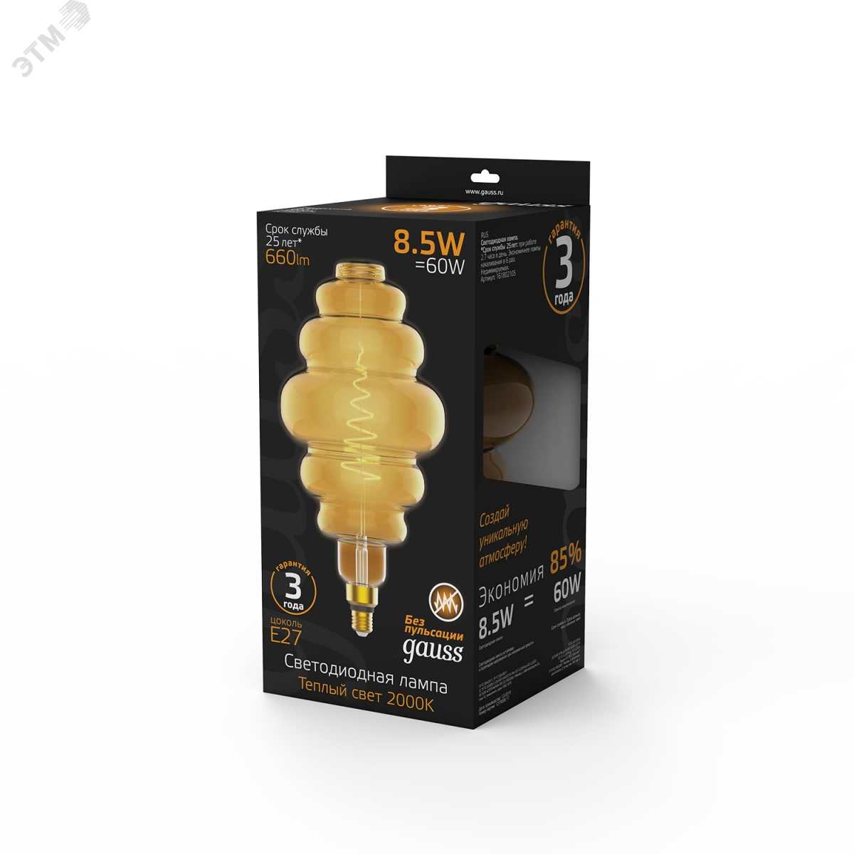 Лампа светодиодная LED 8.5 Вт 660 Лм 2000К теплая Е27 Honeycomb golden Filament Gauss