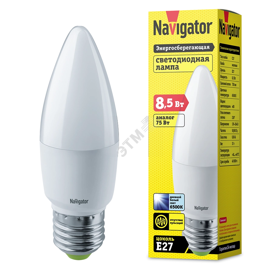 Cветодиодные лампы Navigator – идеальная замена стандартных ламп накаливания. Данные лампы работают в широком диапазоне входного напряжения от 176 до 264 В без снижения яркости. При производстве ламп используются светодиоды Epistar (Тайвань), что обеспечивает высокую эффективность до 100 лм/Вт. Радиатор изготовлен из композитного материала на основе пластика и алюминия, что способствует увеличению срока службы лампы. Угол раскрытия светового луча – 230 градусов. Отсутствуют пульсации светового потока.