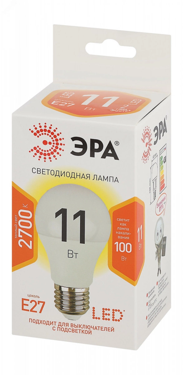 Бытовая светодиодная лампа ЭРА Серии Стандарт, создаёт яркое ровное освещение и экономит до 90% электроэнергии по сравнению с лампой накаливания с аналогичным световым потоком. Светит теплым светом с жёлтым оттенком - такая цветовая температура эффективна для отдыха и уютной атмосферы в доме. Используется в потолочных, настенных, настольных светильниках, в люстрах и бра. Мгновенно включается и не нагревается.
