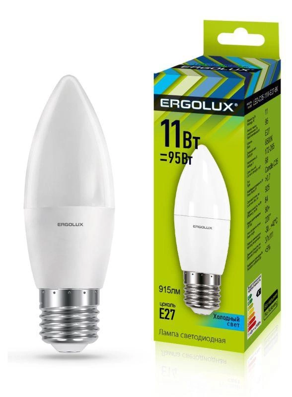 Лампа светодиодная LED-C35-11W-E27-4K Свеча 11Вт E27 4500К 172-265В Ergolux 13622