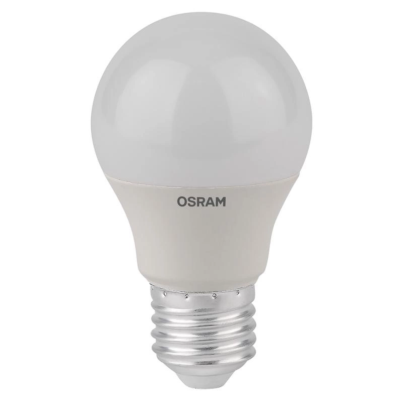 Лампа светодиодная LED STAR CLASSIC A 40 6W/827 230V FR E27 OSRAM 4052899971516 – лампа с матовой колбой "шар", белого света, длиной 110 мм, диаметром 60 мм, с цоколем Е27, мощностью 6 Вт. Цветовая температура 2700 К.