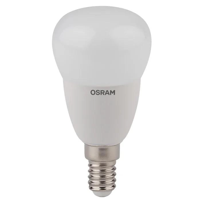 Лампа светодиодная LED CLASSIC P 40 5.5W/827 230V FR E14 OSRAM 4052899971615 – лампа с матовой колбой, белого света, длиной 78 мм, диаметром 45 мм, с цоколем Е14, мощностью 5,5 Вт. Цветовая температура 2700 К.
