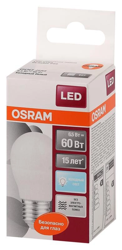 Лампа светодиодная OSRAM LEDSCLP60 6,5W/840 230VFR E2710X1RUOSRAM, 550 лм, 6,5Вт (замена 60Вт), 4000К (нейтральный белый свет). Цоколь E27, колба P. Исполнение колбы матовое, пластик. Напряжение питания 220-240В. Товар сертифицирован.