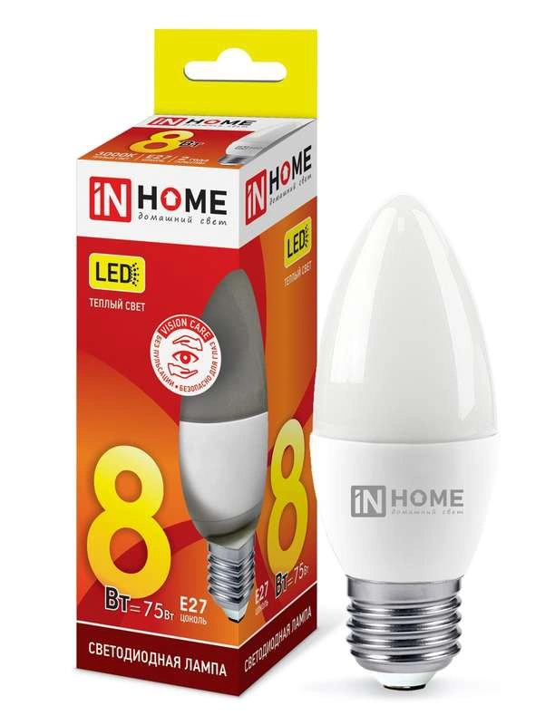 Полное описание: Лампа светодиодная LED-СВЕЧА-VC 8Вт 230В E27 3000К 720лм IN HOME 4690612020440