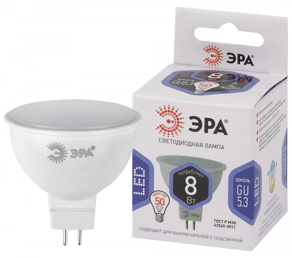 Лампа светодиодная STD LED MR16-8W-12V-860-GU5.3 GU5.3 8 Вт софит холодный дневной свет ЭРА