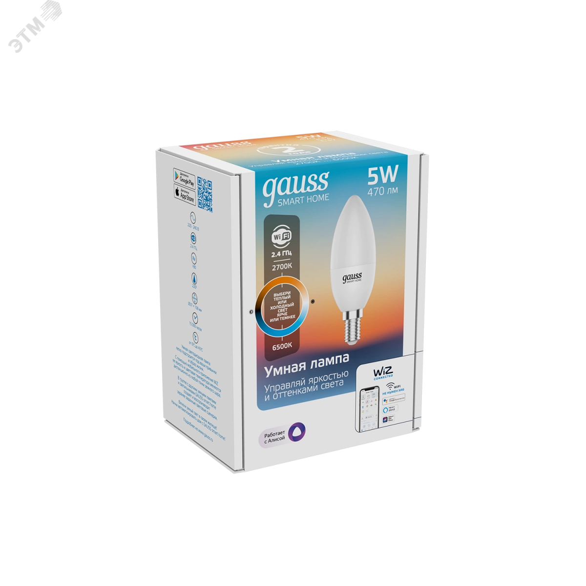Лампа светодиодная умная LED 5 Вт 470 Лм 2700-6500К Е14 свеча изм.цвет.темп.+диммирование управление по Wi-Fi Smart Home Gauss
