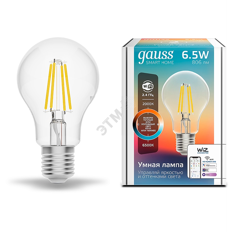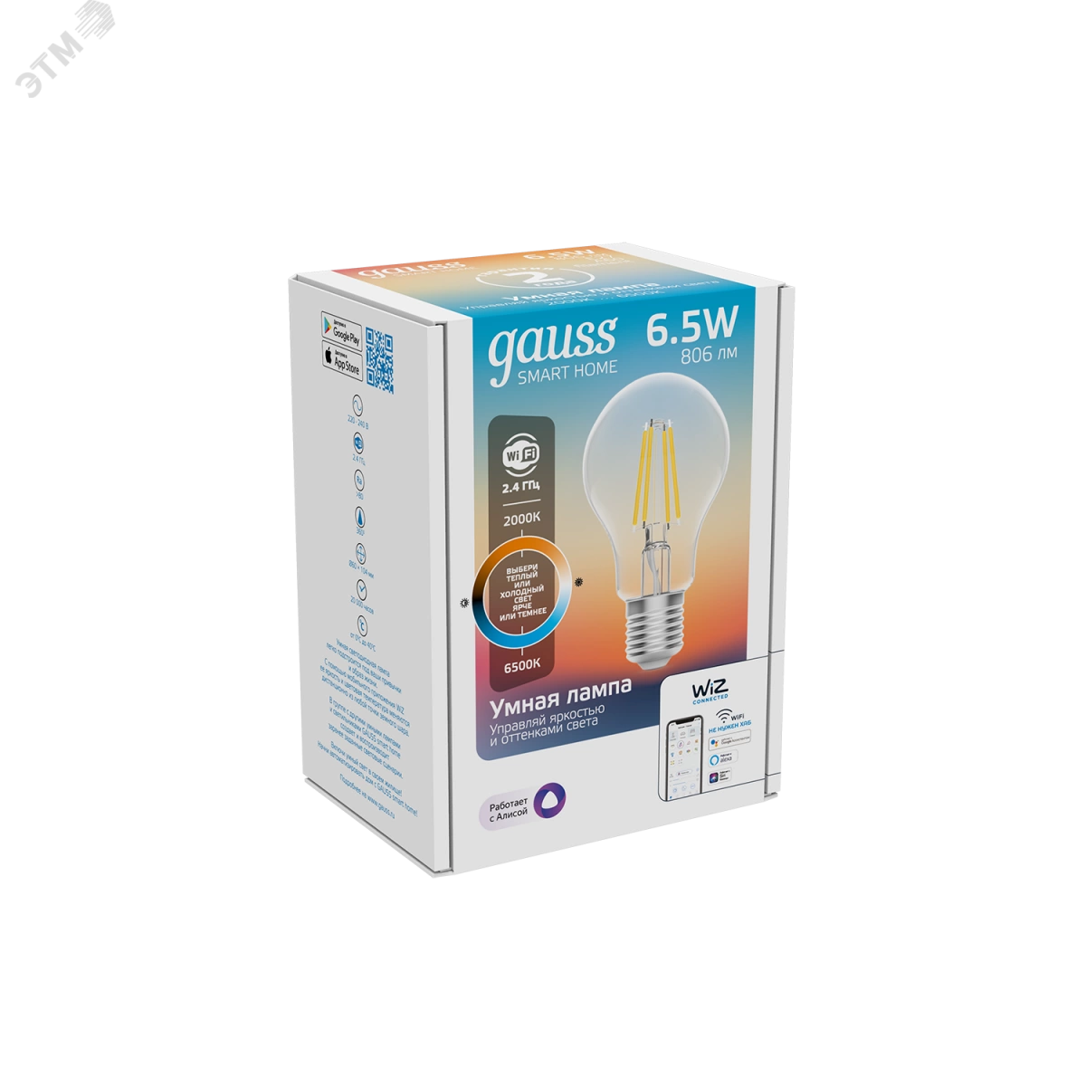 Лампа светодиодная умная LED 6.5 Вт 806 Лм 2000-6500К E27 А60 изм.цвет.темп.+дим. управление по Wi-Fi Smart Home Filament Gauss