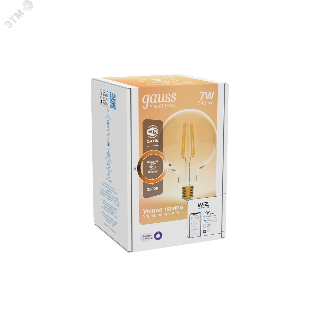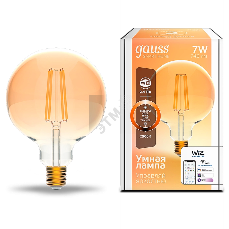 Лампа светодиодная умная LED 7 Вт 740 Лм 2500К E27 G95 диммируемая управление по Wi-Fi Smart Home Filament Gauss