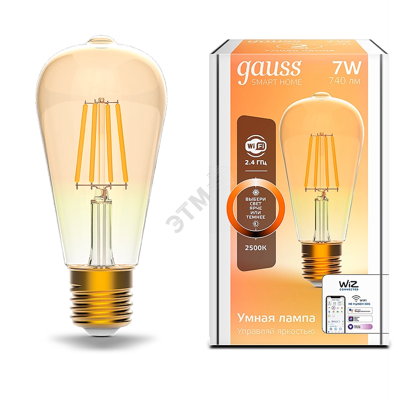 Лампа светодиодная умная LED 7 Вт 740 Лм 2500К E27 ST64 диммируемая управление по Wi-Fi Smart Home Filament Gauss