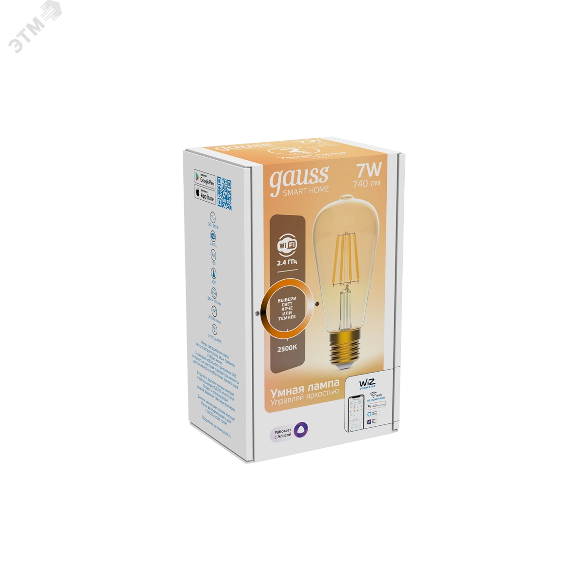 Умные' филаментные лампы благодаря прозрачной колбе освещают комнаты более равномерно, чем большинство светодиодных ламп других видов. И потому они могут с успехом использоваться как в общем, так и в местном освещении. В серии Gauss Smart Home доступны две группы филаментных ламп. Лампы первой группы внешне схожи с классическими лампами накаливания, и потому прекрасно смотрятся в люстрах и бра. Ко второй группе LOFT относятся декоративные филаментные лампы с прозрачной колбой золотистого цвета, которые благодаря своей оригинальной форме не требуют обрамления в виде плафонов или абажуров. В этой группе есть как лампы с изменяемой яркостью и теплым золотистым светом (2700 К), так и лампы, в которых переменная яркость совмещается с изменяемой цветовой температурой — от очень теплого свечения (2000 К) до холодного белого (5500 К). Доступные номиналы мощностей 6,5 Вт и 7 Вт.